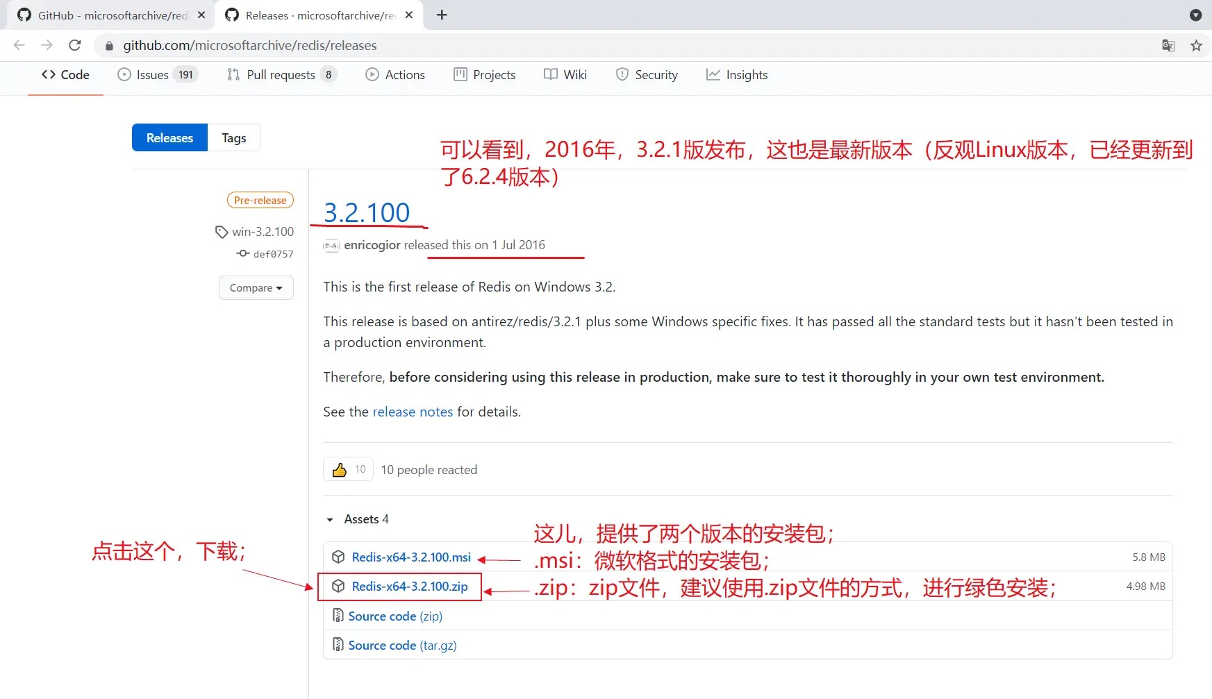 进入【https://github.com/MicrosoftArchive/redis】