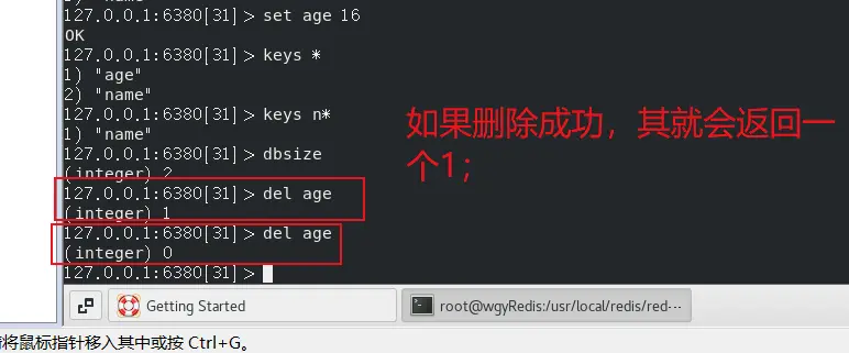 (7) del命令:根据key值删除数据;