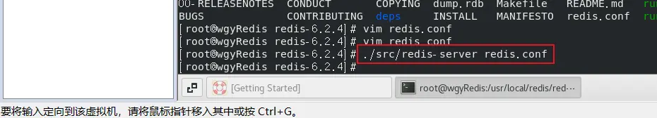 在redis-6.2.4目录,通过【./src/redis-server redis.conf】来启动redis;