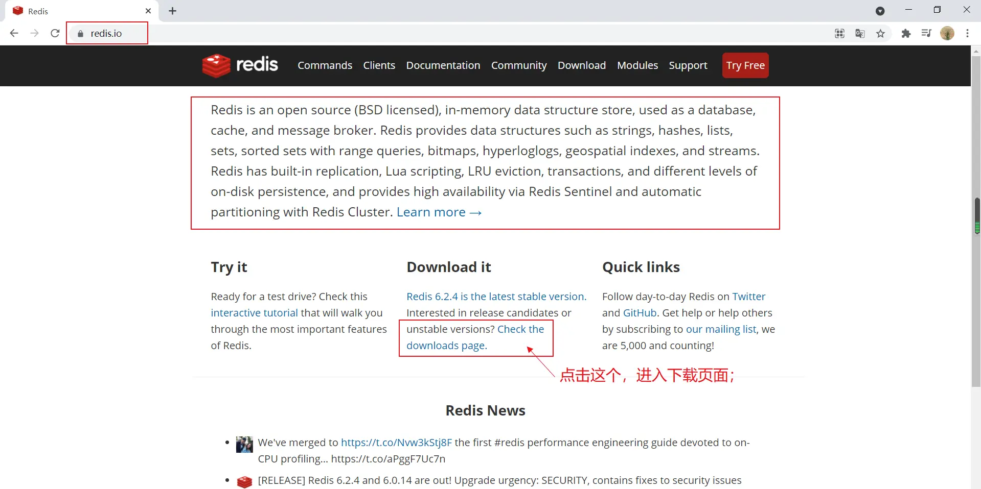 访问redis官网【https://redis.io/】;