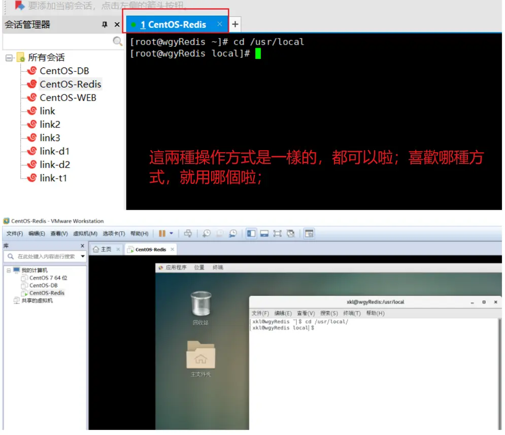 在虚拟机里面操作,和通过Xshell远程连接操作,是一样的;