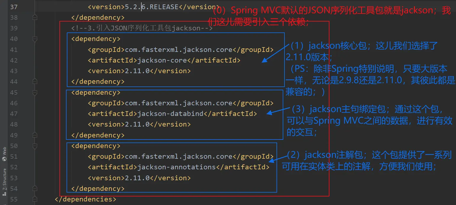 (6)第六步: 如果涉及到JSON序列化输出,还需要配置JSON序列化组件jackson;