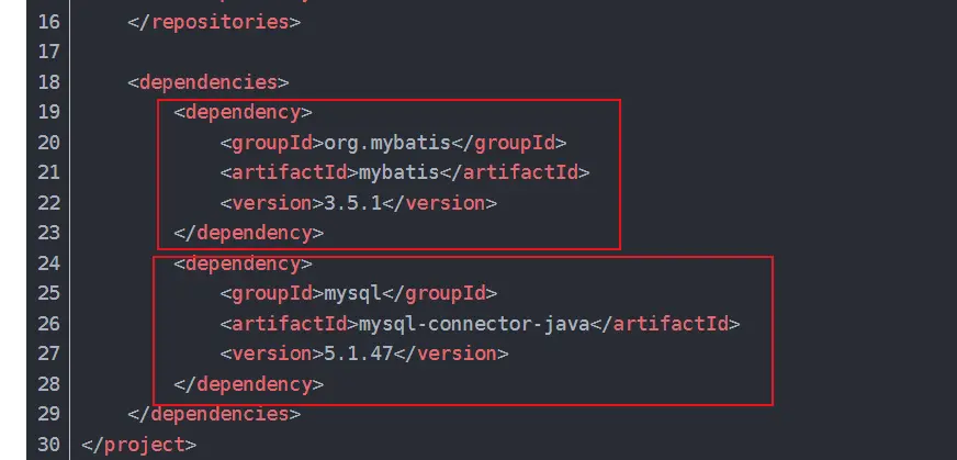 ● 只是用Mybatis时,需要引入【mybatis的依赖:mybatis】和【JDBC的依赖:mysql-connector-java】;因为Mybatis底层是基于JDBC的MySQL驱动,所以需要MySQL的依赖;