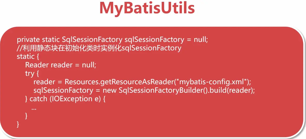 ● 即,我们在单独使用Mybatis的时候,需要单独开发一个工具类MyBatisUtils,来封装初始化代码;
