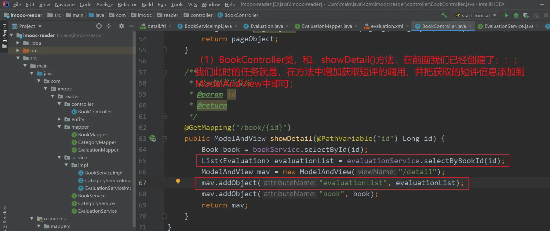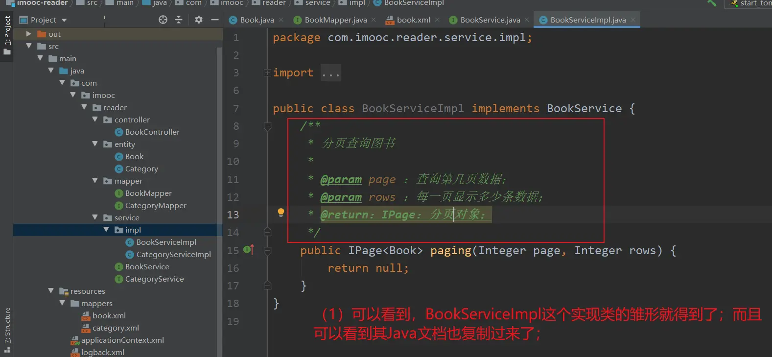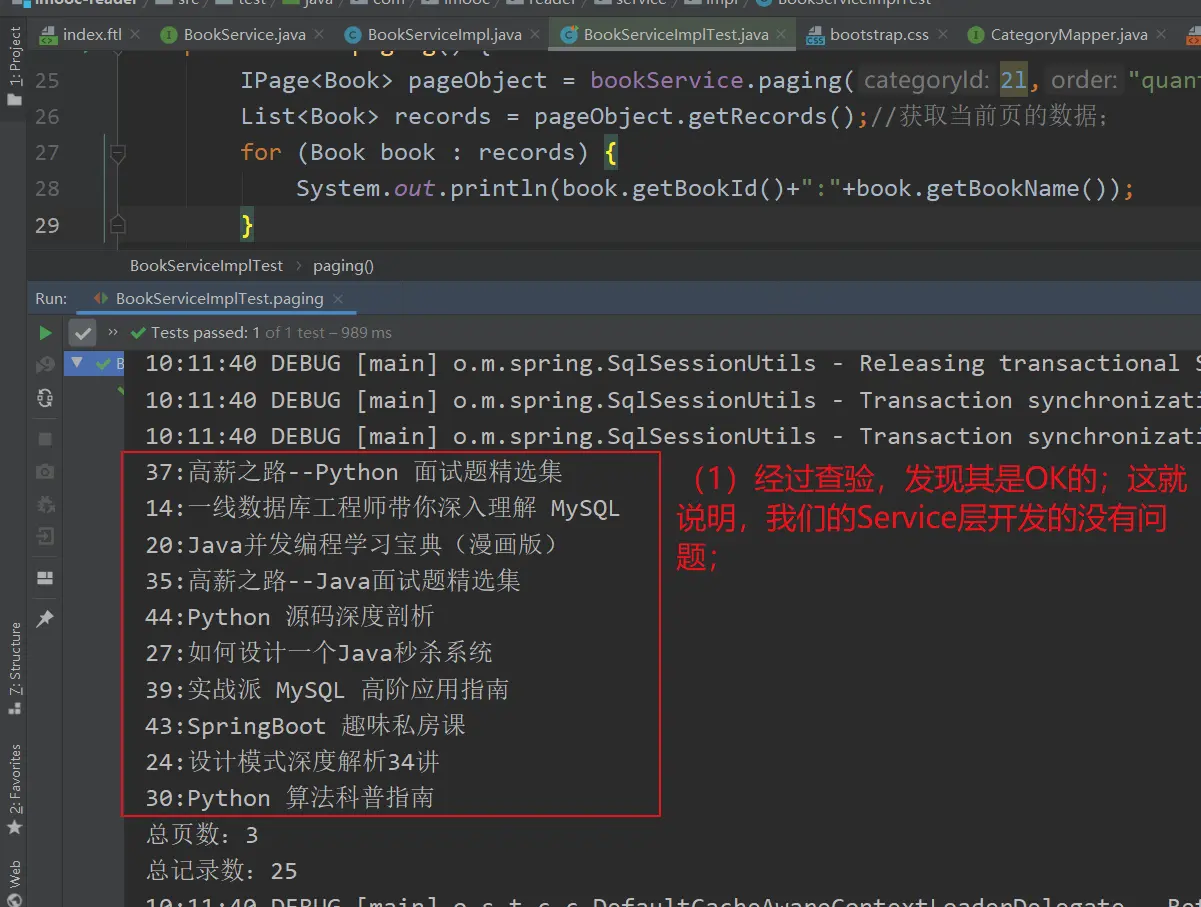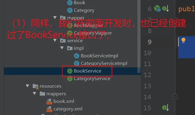 4.开发service,调用Dao层代码,完成图书短评的查询工作;