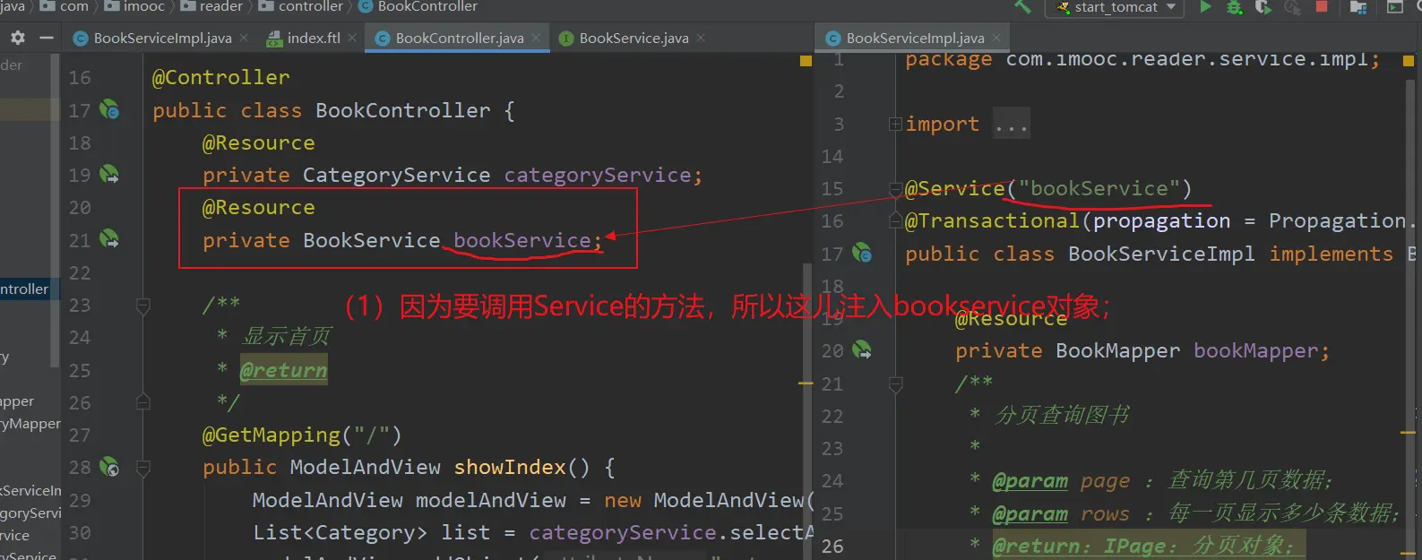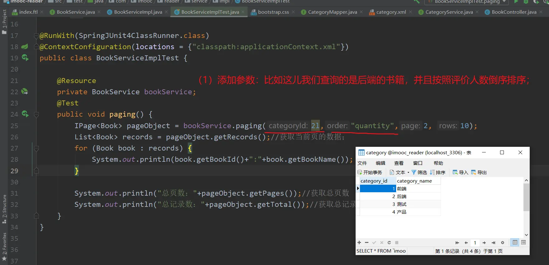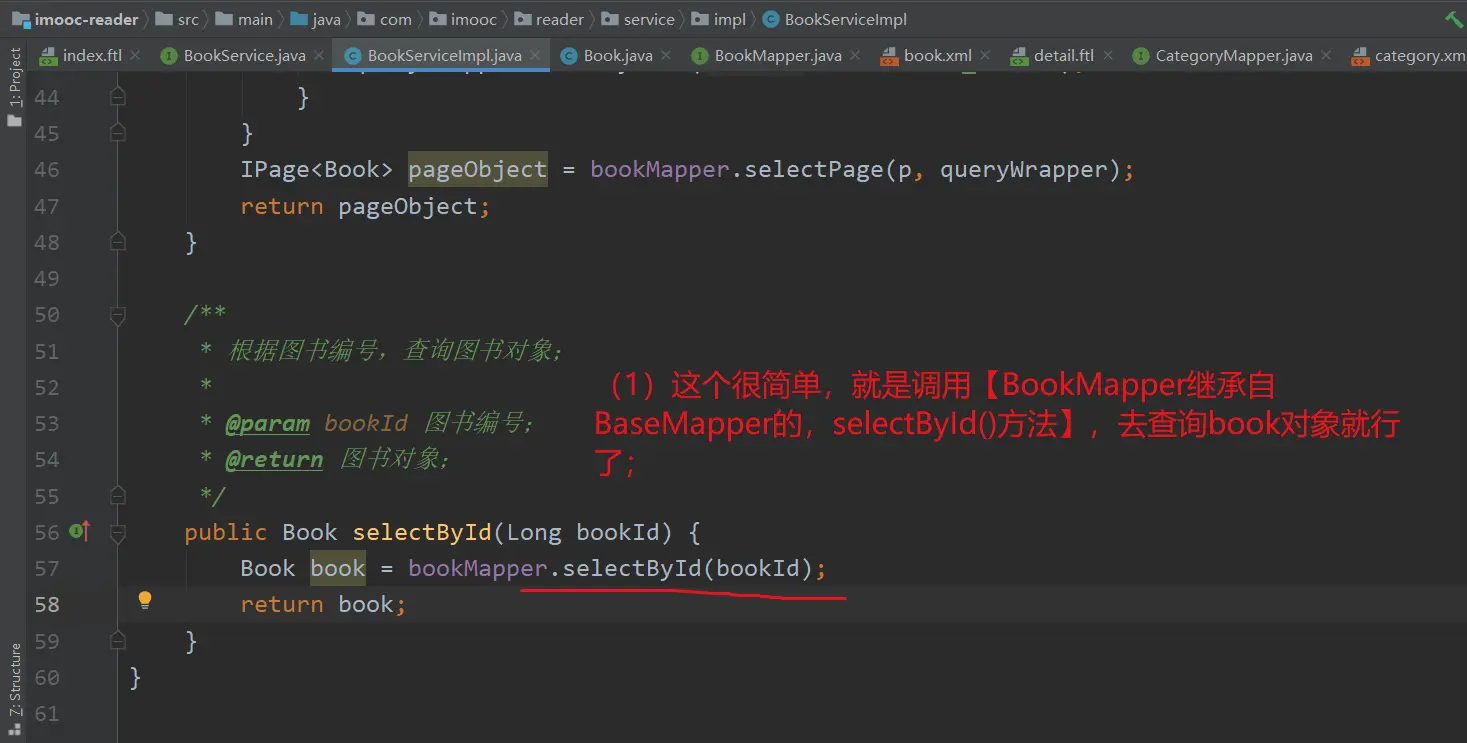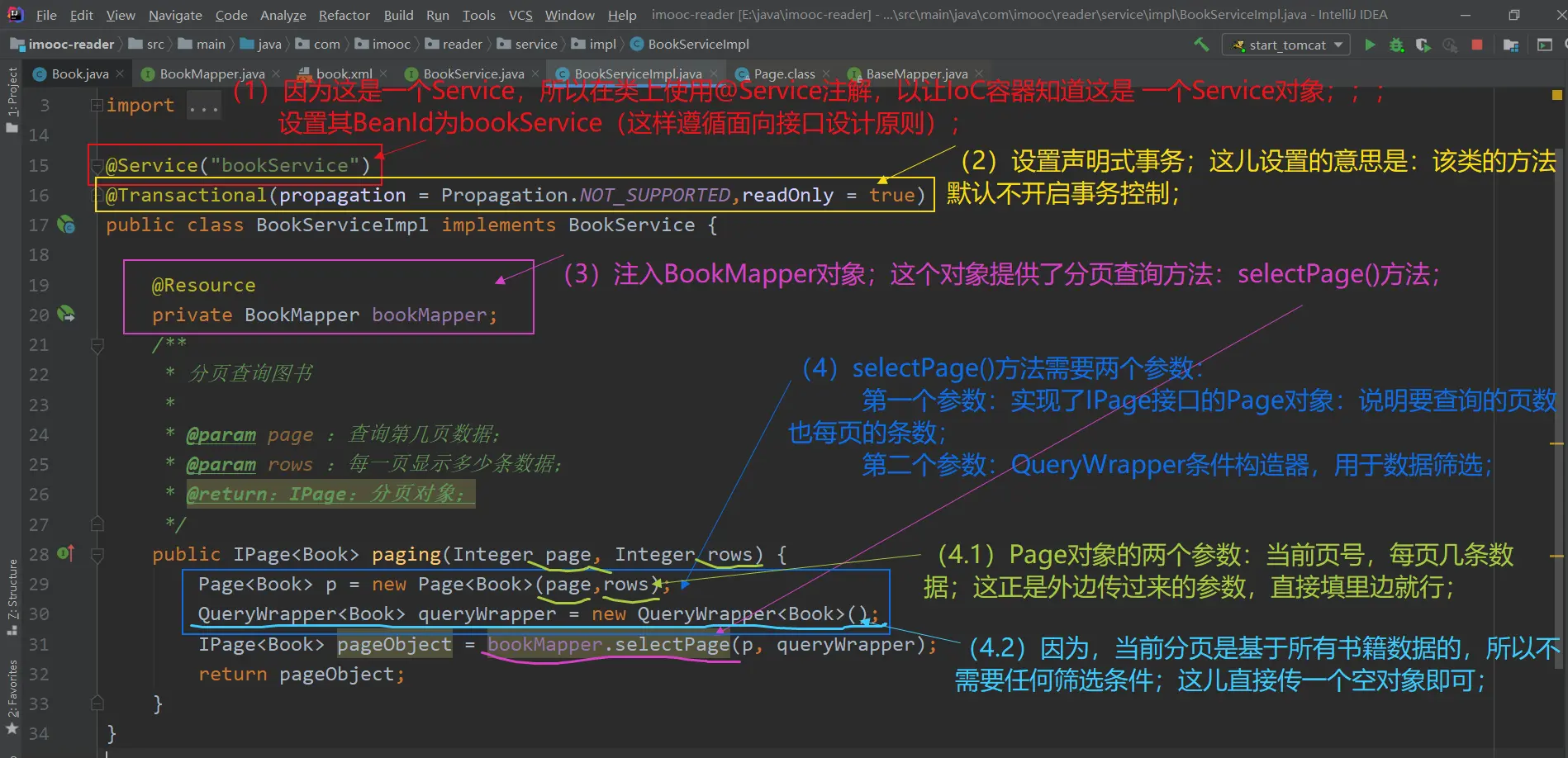4.开发service,调用Dao层代码,完成图书短评的查询工作;