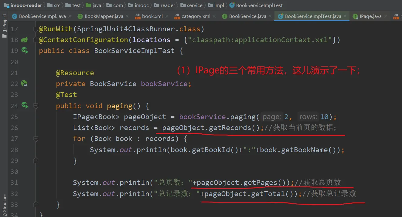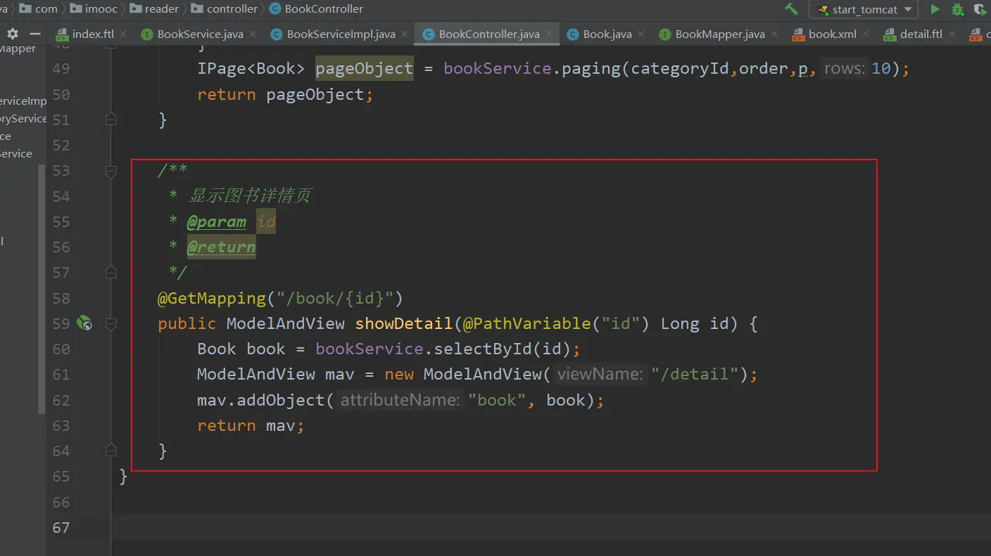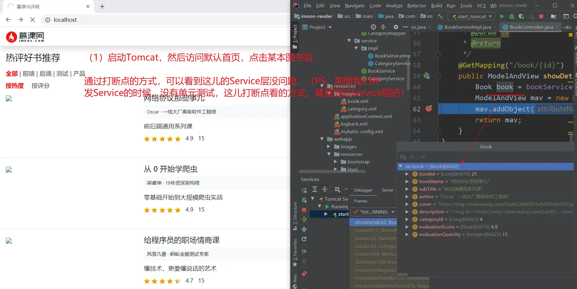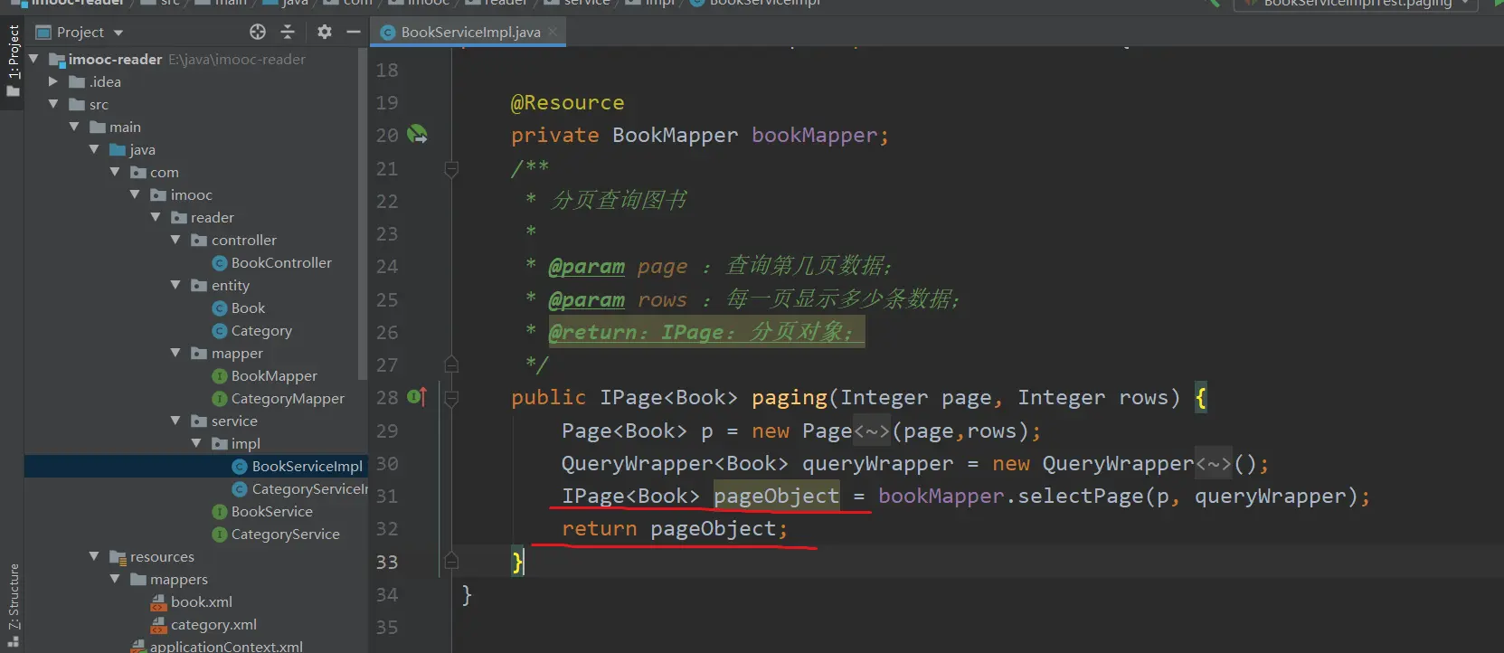 4.开发service,调用Dao层代码,完成图书短评的查询工作;