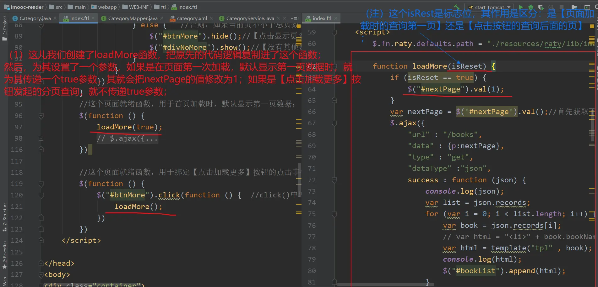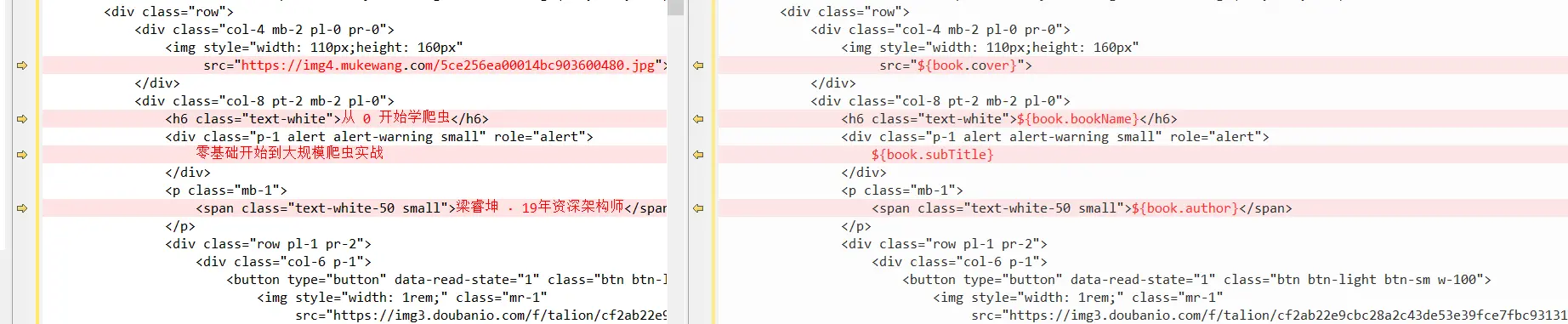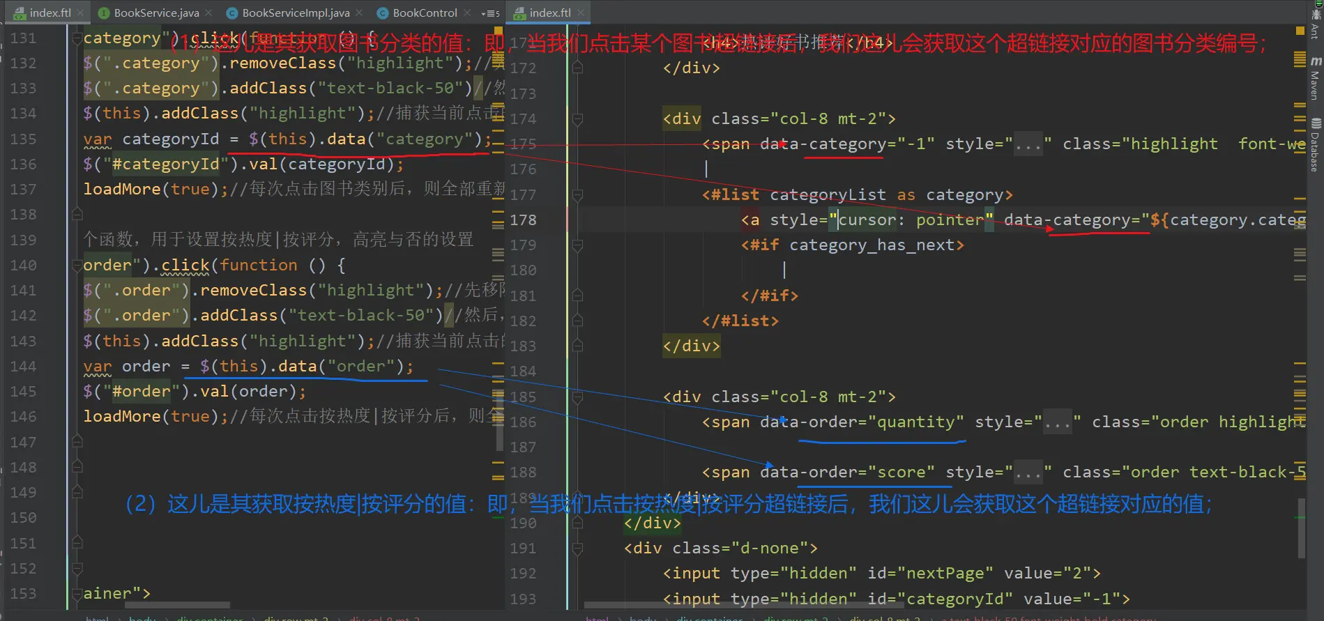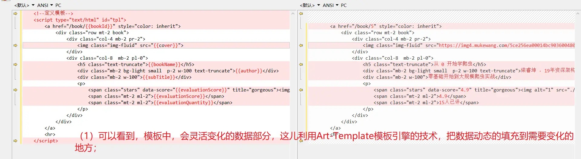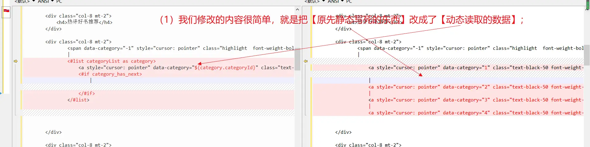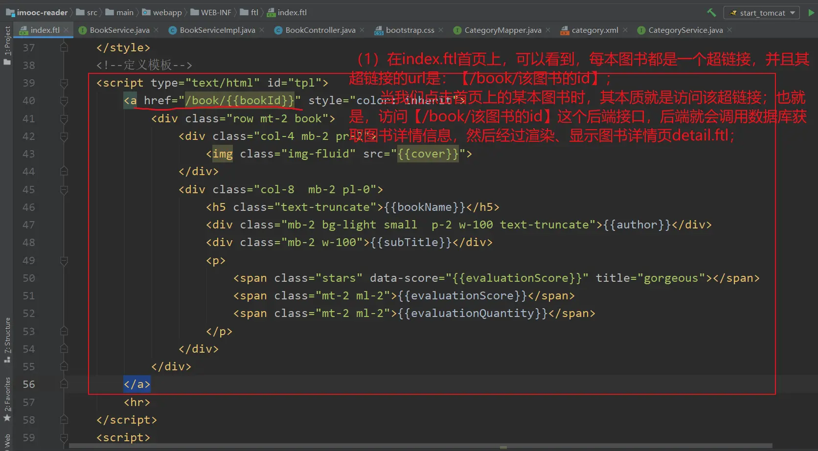 ● 问题: 在【JS模板引擎Art-Template入门】中,我们开发首页时,首页的图书信息,我们是这样做的:【前提,我们首先设置一个<div>容器,把这个容器作为盛放图书信息的容器】→【首先,当后端的图书数据过来后,这些数据是List】→【遍历这些List,每获取一条图书数据,就通过Art-Template定义模板,把这条数据渲成HTML片段】→【然后,把这端HTML,追加到那个容器中】;:为什么在前面显示图书信息这篇博客中,我们这样做;而,在这儿,我们显示短评信息时,我们直接<#list>遍历显示就行了?