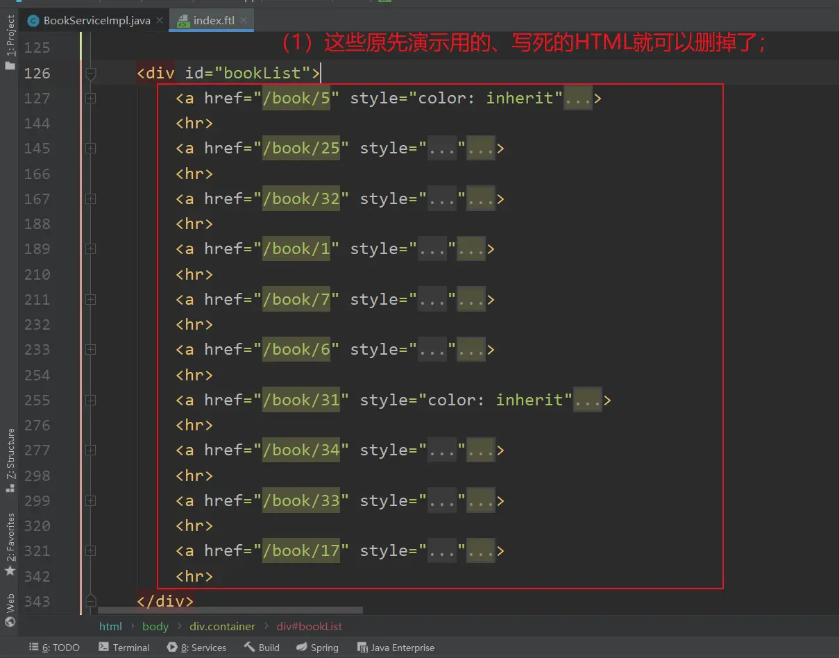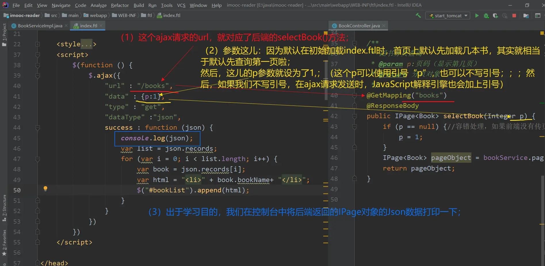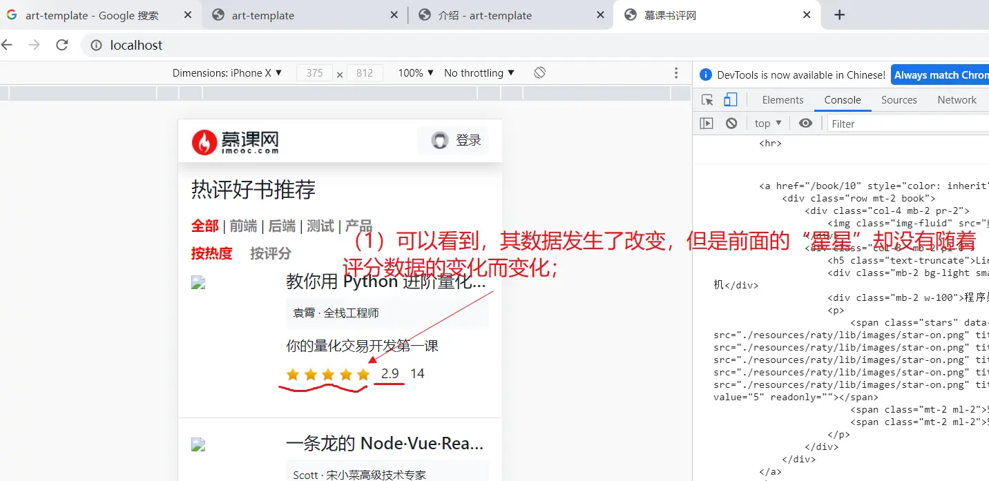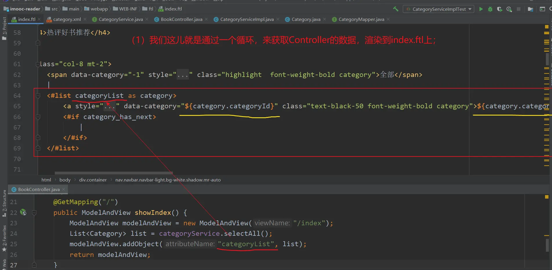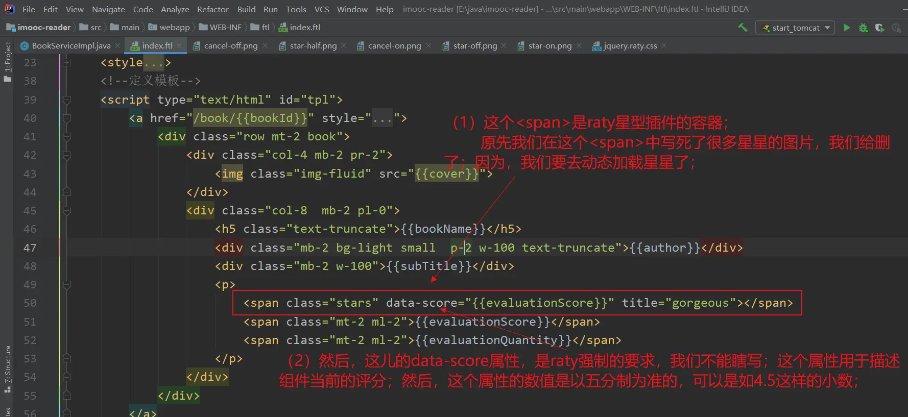 ● 问题: 在【JS模板引擎Art-Template入门】中,我们开发首页时,首页的图书信息,我们是这样做的:【前提,我们首先设置一个<div>容器,把这个容器作为盛放图书信息的容器】→【首先,当后端的图书数据过来后,这些数据是List】→【遍历这些List,每获取一条图书数据,就通过Art-Template定义模板,把这条数据渲成HTML片段】→【然后,把这端HTML,追加到那个容器中】;:为什么在前面显示图书信息这篇博客中,我们这样做;而,在这儿,我们显示短评信息时,我们直接<#list>遍历显示就行了?