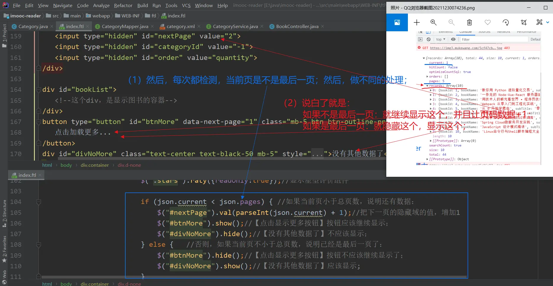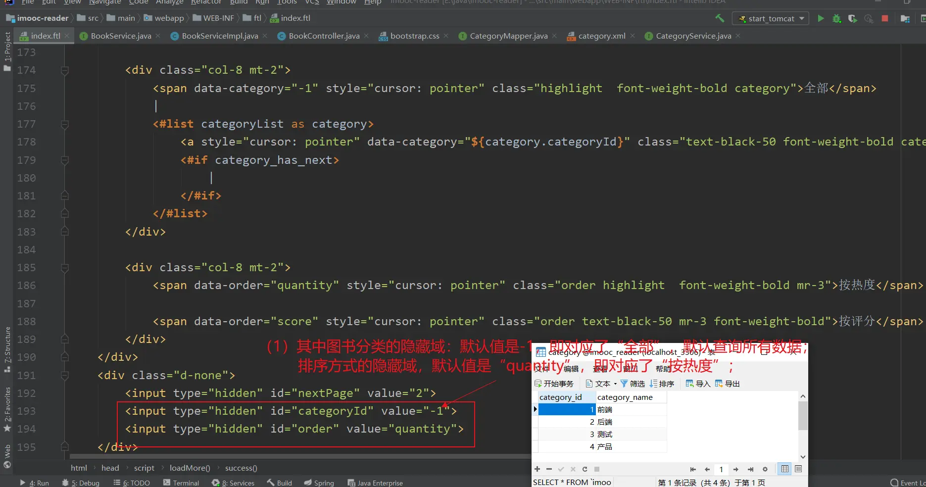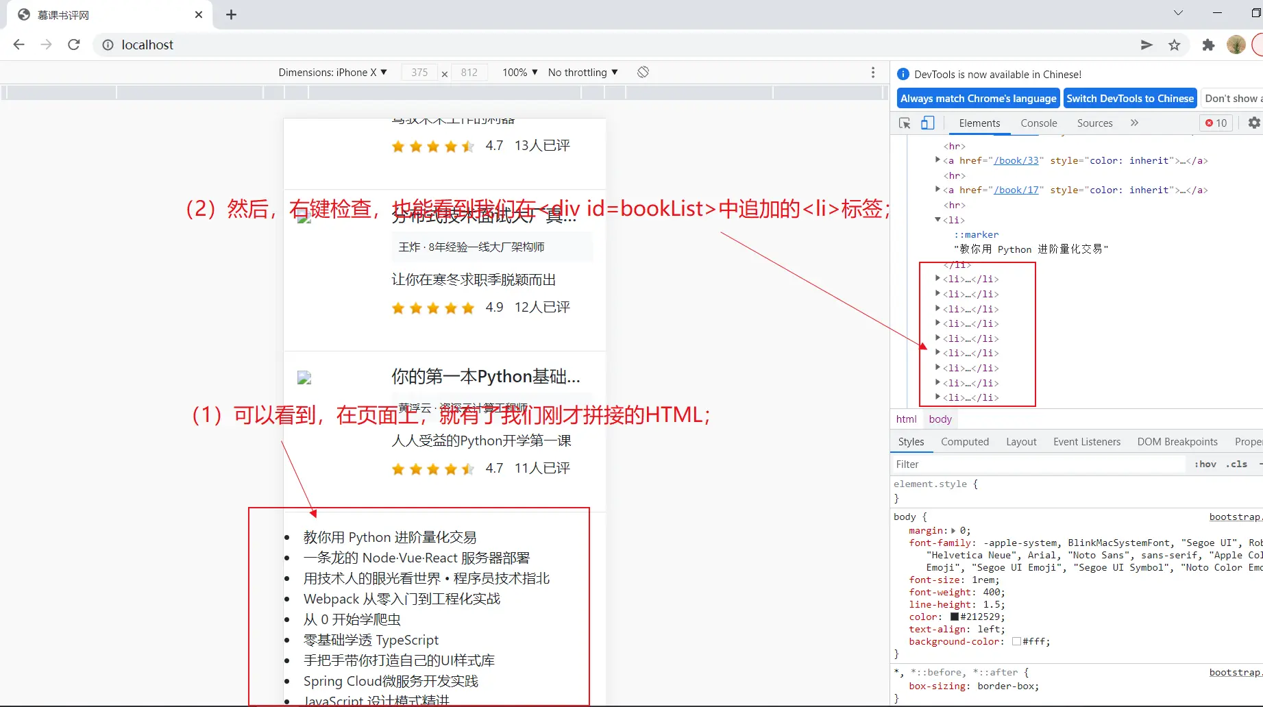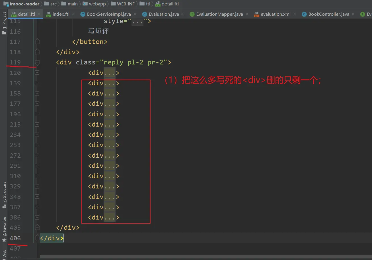 ● 问题: 在【JS模板引擎Art-Template入门】中,我们开发首页时,首页的图书信息,我们是这样做的:【前提,我们首先设置一个<div>容器,把这个容器作为盛放图书信息的容器】→【首先,当后端的图书数据过来后,这些数据是List】→【遍历这些List,每获取一条图书数据,就通过Art-Template定义模板,把这条数据渲成HTML片段】→【然后,把这端HTML,追加到那个容器中】;:为什么在前面显示图书信息这篇博客中,我们这样做;而,在这儿,我们显示短评信息时,我们直接<#list>遍历显示就行了?