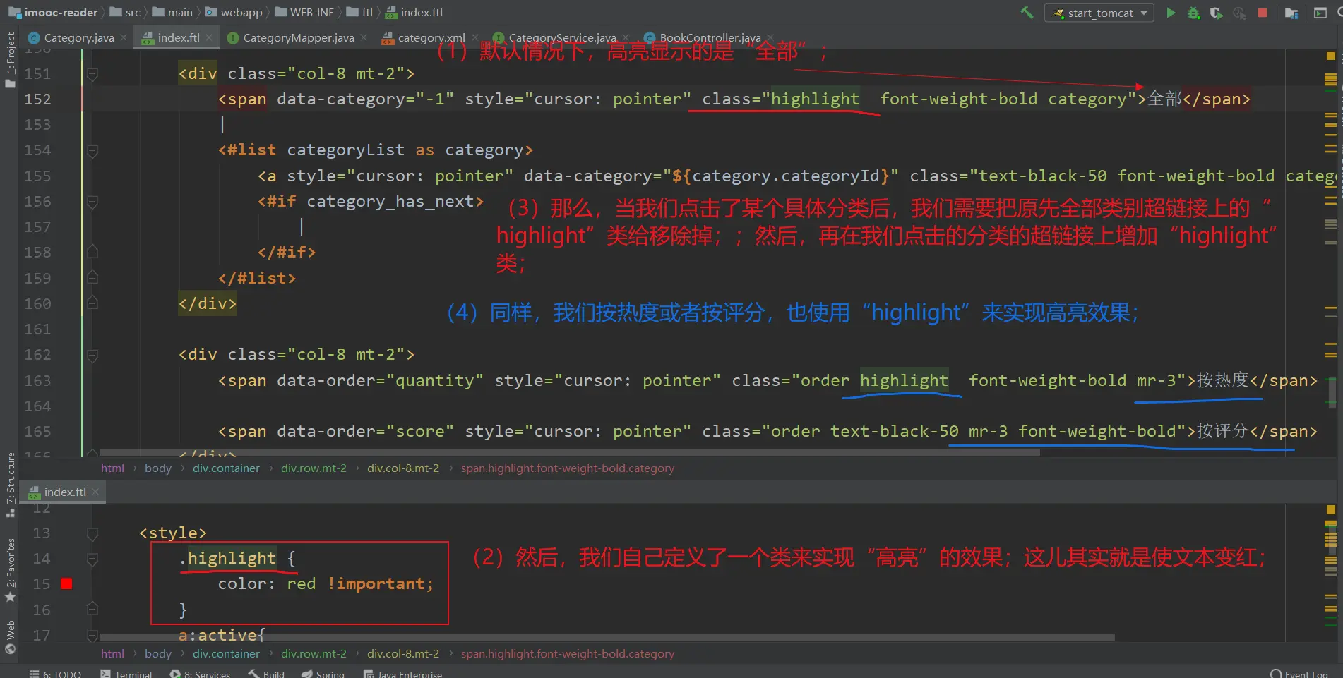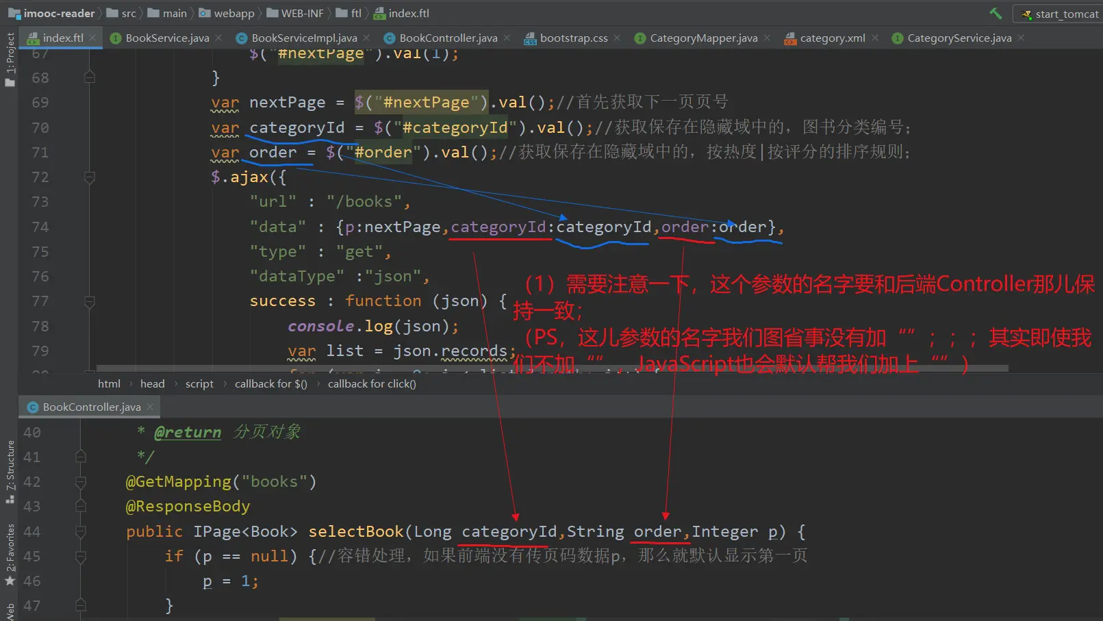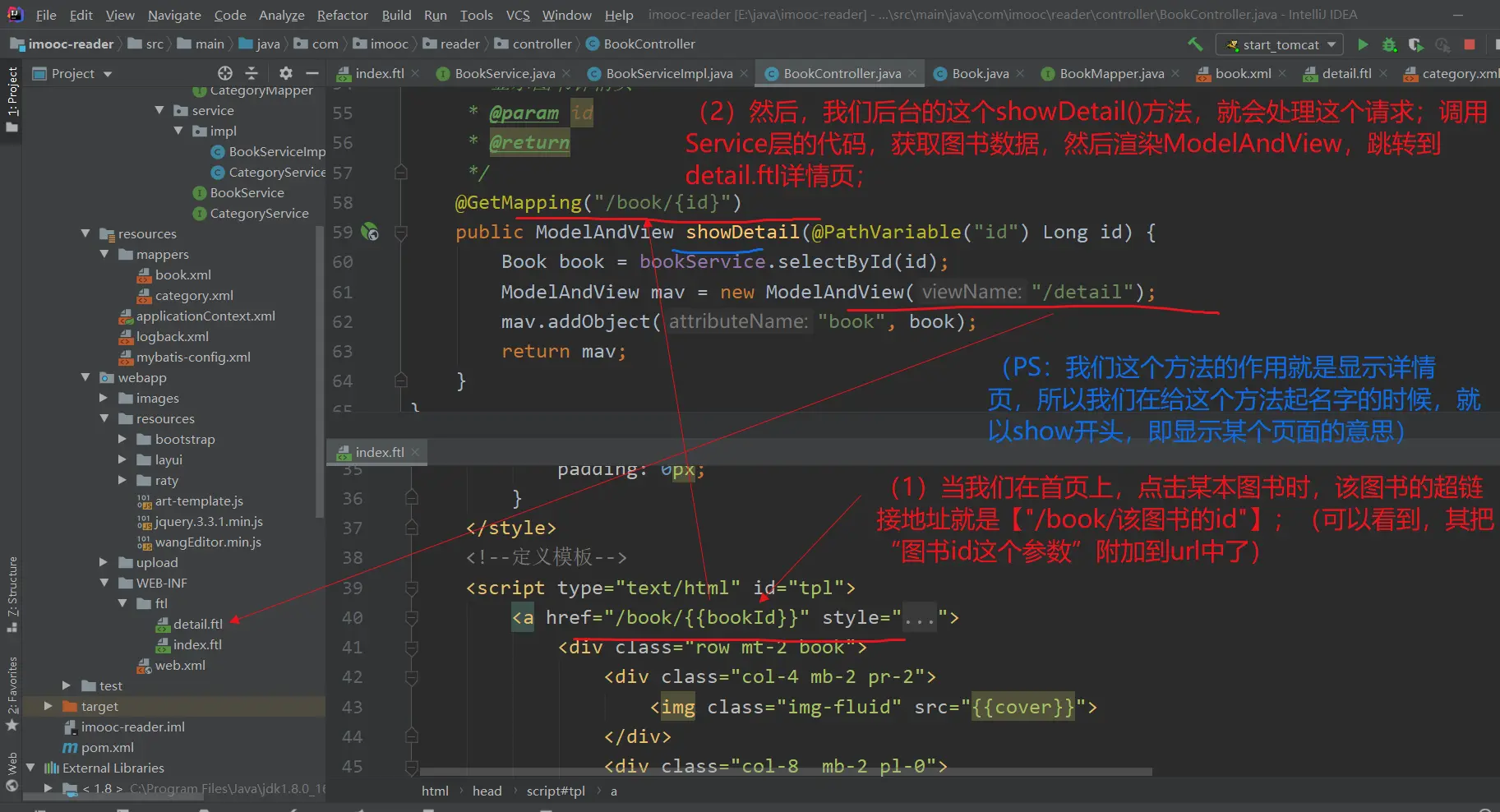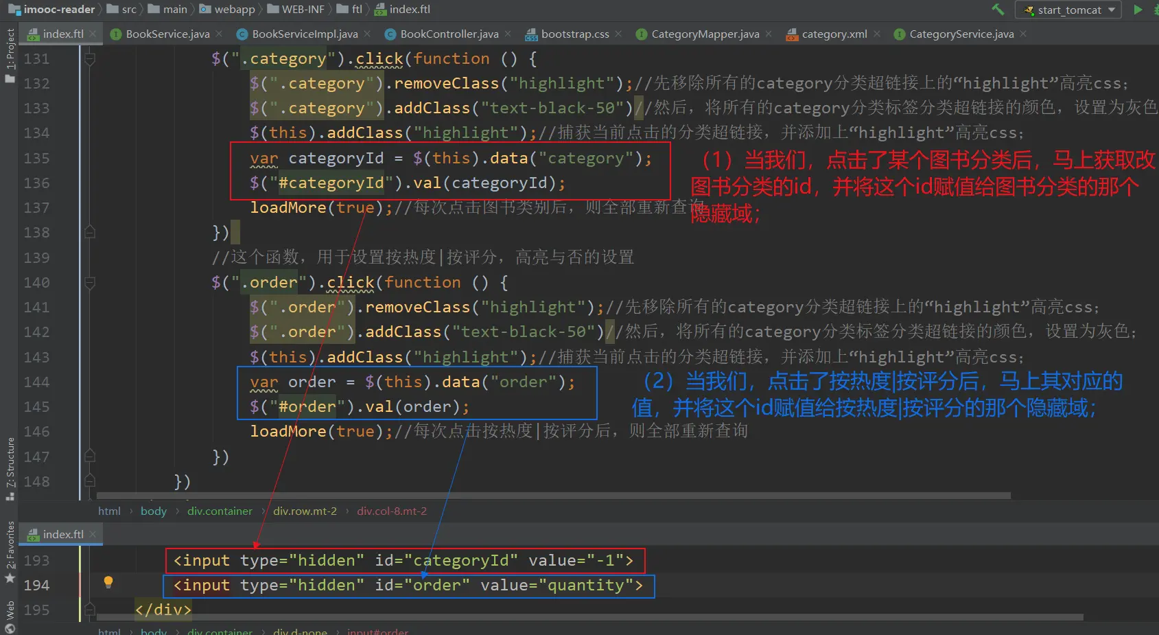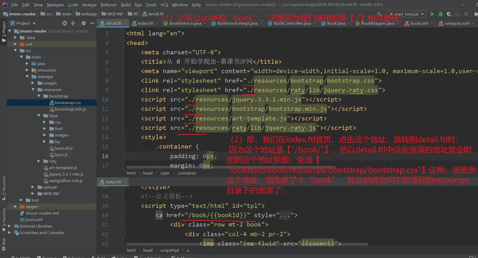 ● 问题: 在【JS模板引擎Art-Template入门】中,我们开发首页时,首页的图书信息,我们是这样做的:【前提,我们首先设置一个<div>容器,把这个容器作为盛放图书信息的容器】→【首先,当后端的图书数据过来后,这些数据是List】→【遍历这些List,每获取一条图书数据,就通过Art-Template定义模板,把这条数据渲成HTML片段】→【然后,把这端HTML,追加到那个容器中】;:为什么在前面显示图书信息这篇博客中,我们这样做;而,在这儿,我们显示短评信息时,我们直接<#list>遍历显示就行了?