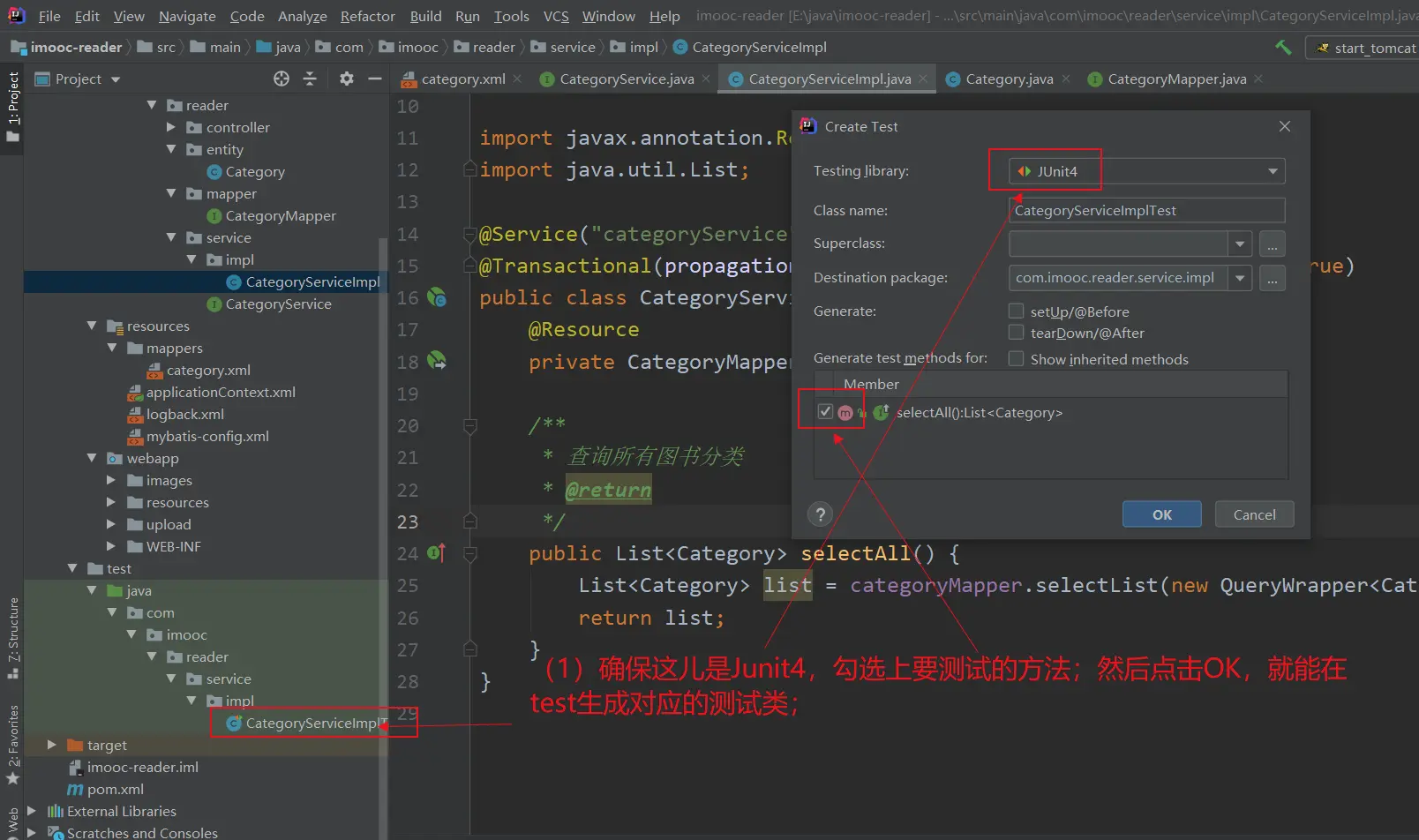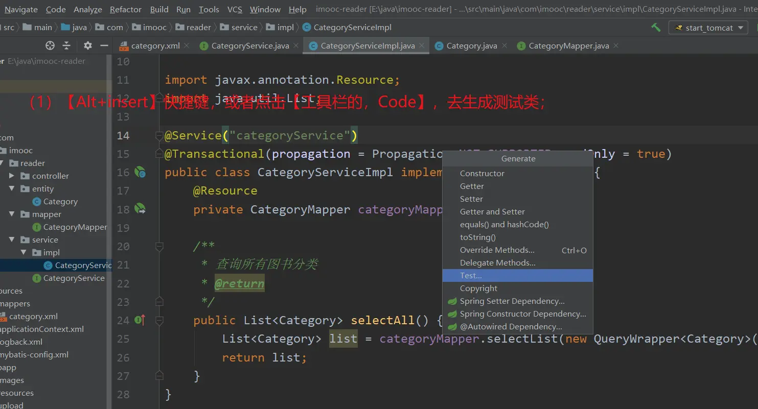 (1) 在CategoryService接口中,定义selectAll()方法;这个方法的目的就是查询category表的所有内容;
