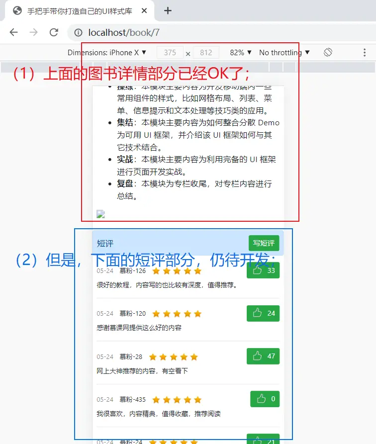 至此,我们就完成了显示某本图书短评的功能;不过这儿仅仅是显示短评;至于给短评点赞、写短评这些内容在后面介绍;