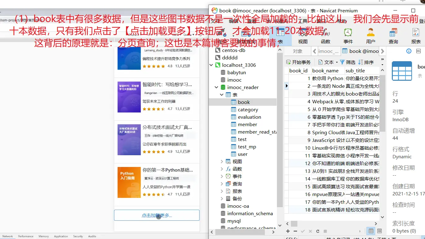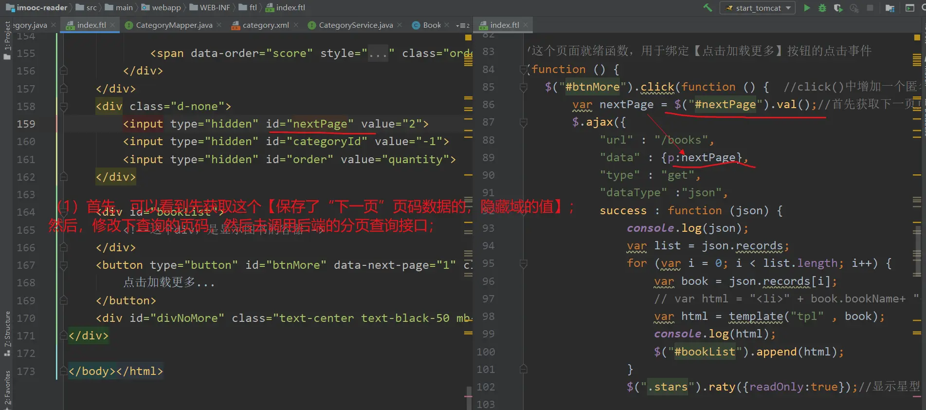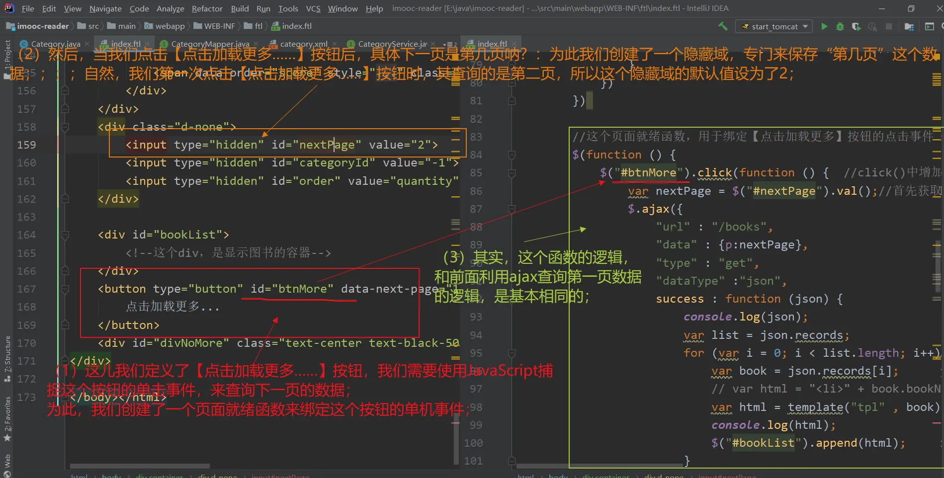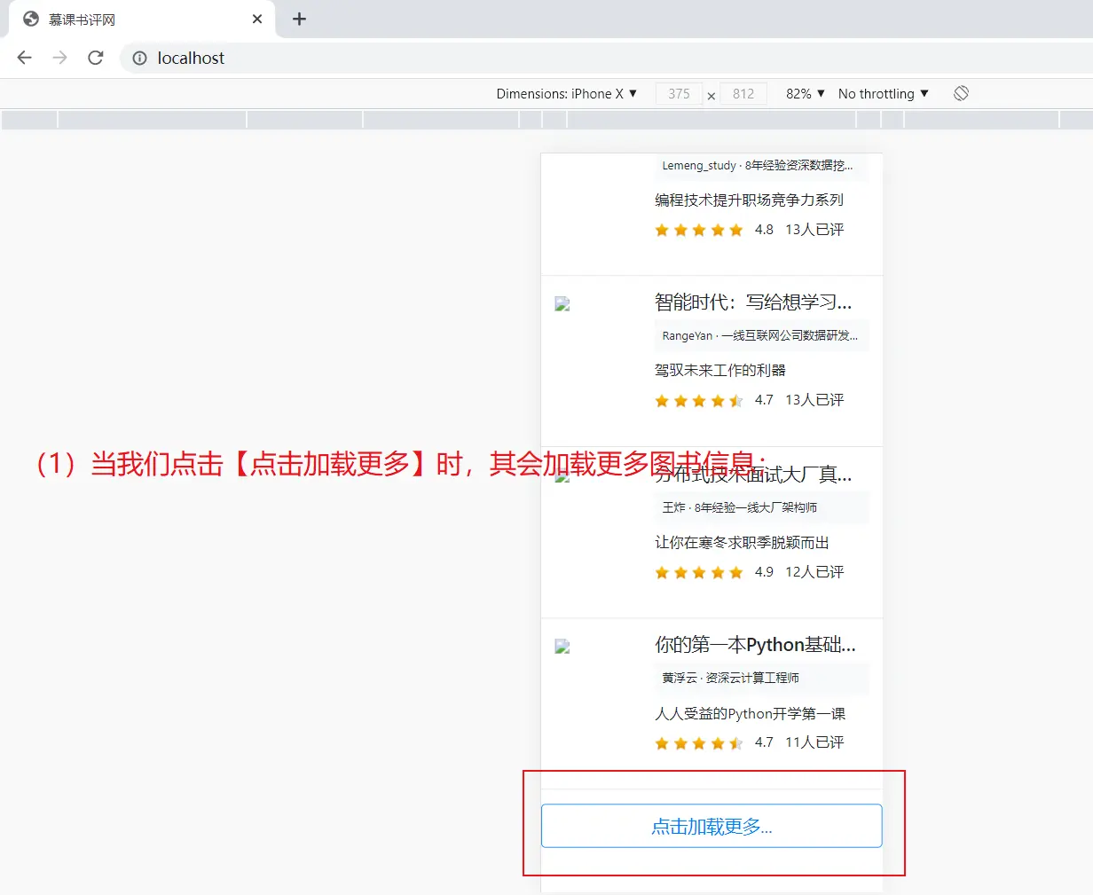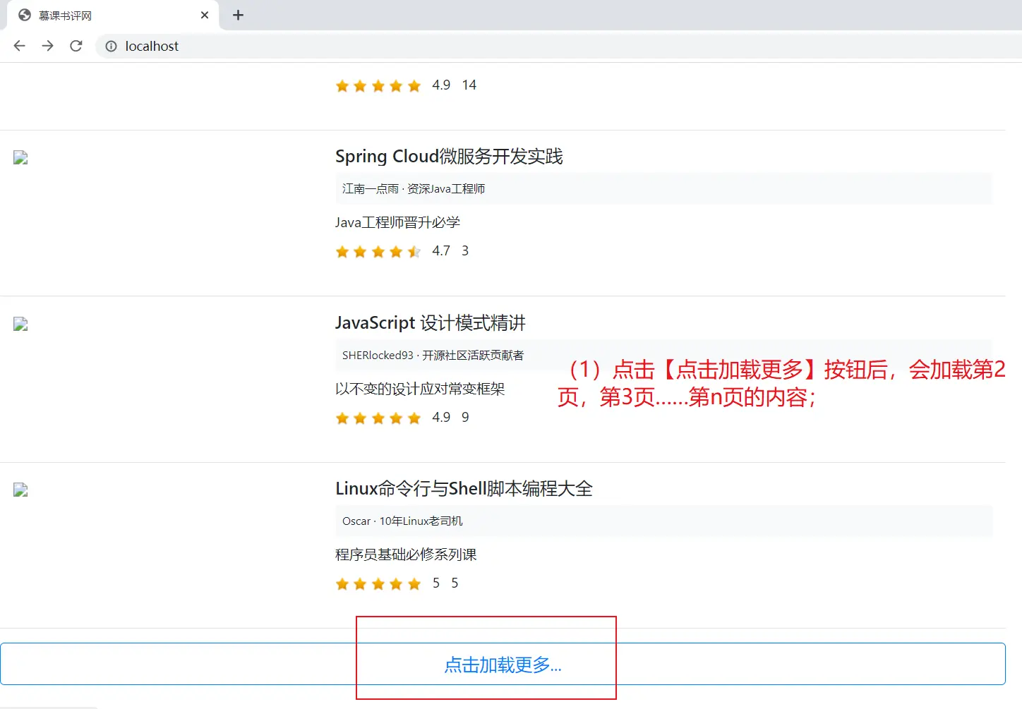 首先,在前面显示图书信息的那篇博客中,首页上我们每次点击【点击加载更多…】按钮,就在首页上多显示一点数据;即显示图书信息时,图书信息不是一次就显示完的,,所以,我们定义了一个Art-Template模板,每次新图书数据来的时候,就通过这个模板生成一段HTML,然后把这段HTML追加到显示图书的容器中;