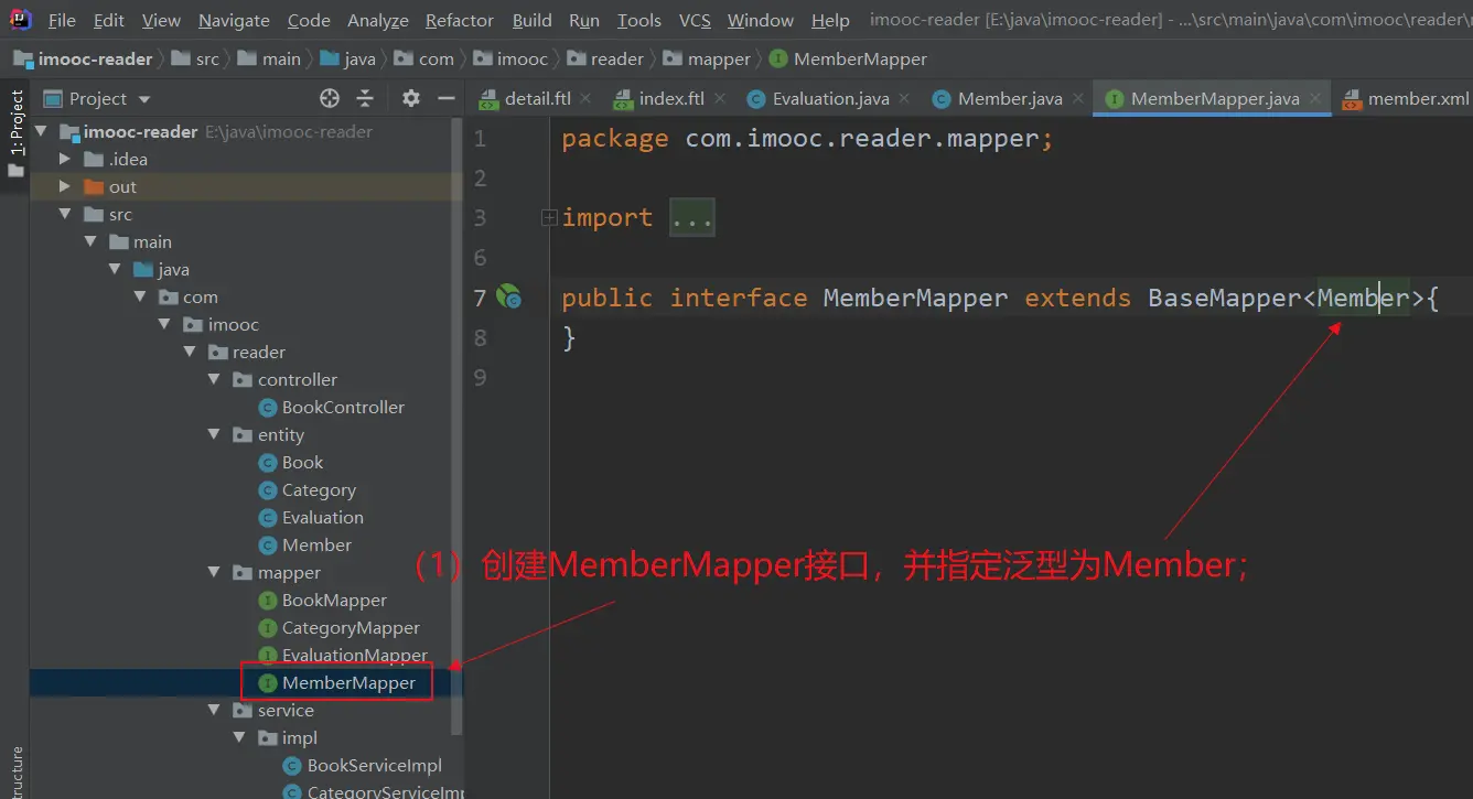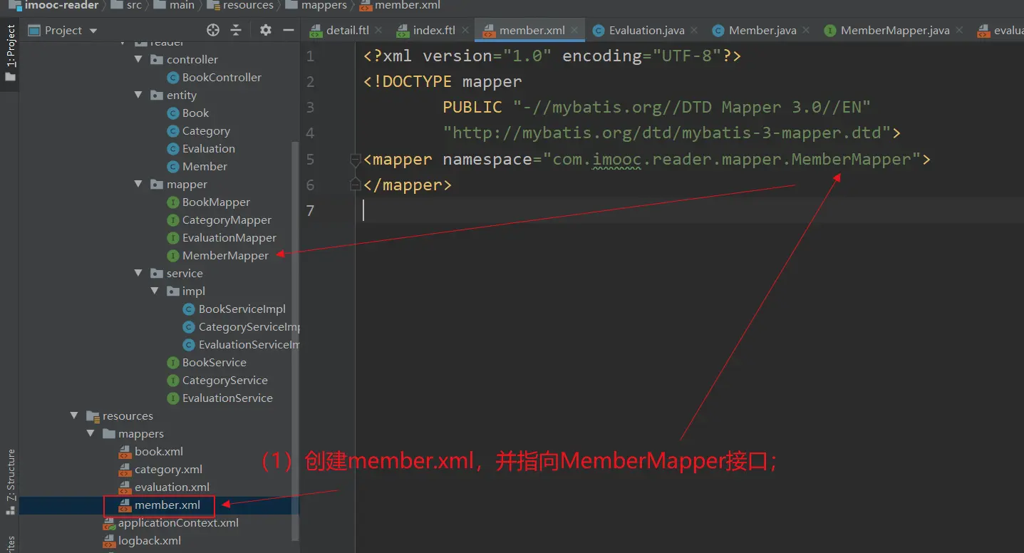 因为会员信息存储在member表中,所以我们要创建操作member表的一套内容,如下:
