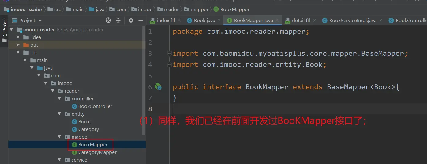 (1) 我们要使用Mybatis- Plus,所以其继承了BaseMapper;同时,这个Mapper接口,使用来服务于category表的,即其增删改查的对象是Category对象,所以设置BaseMapper接口的泛型为Category;