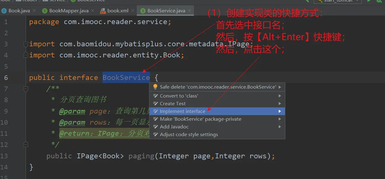 (1) 前面说过,【Alt+Enter】可以快速生成接口的实现类;