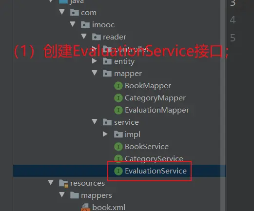 在EvaluationService接口中,定义一个根据图书编号,查询图书短评的方法;