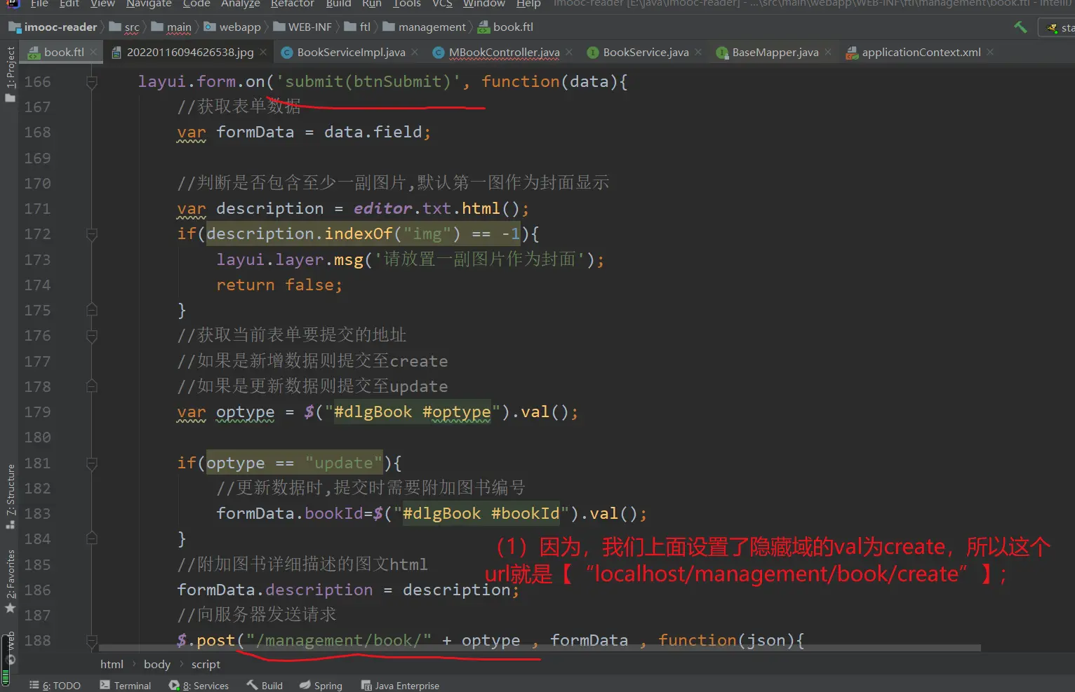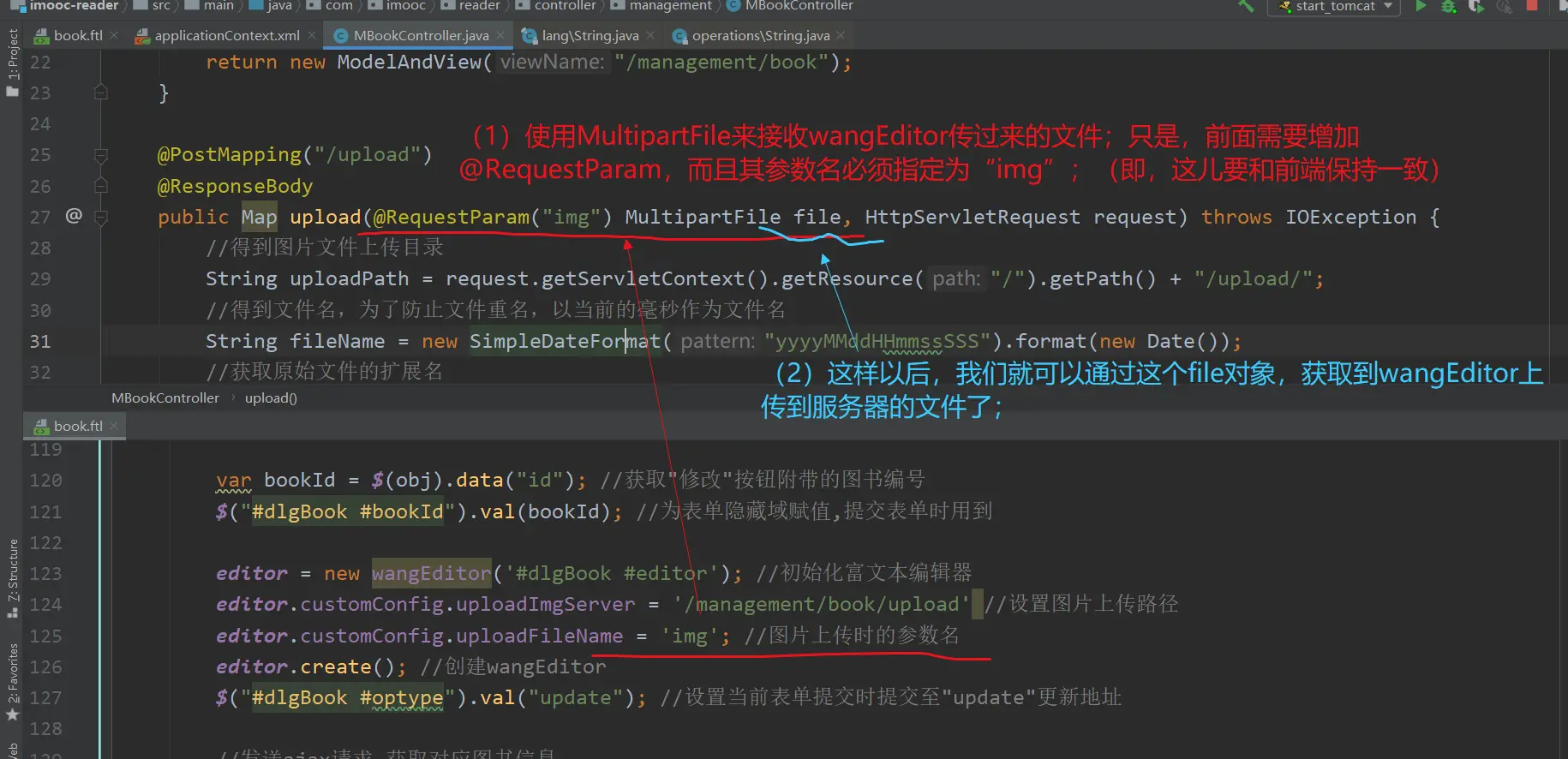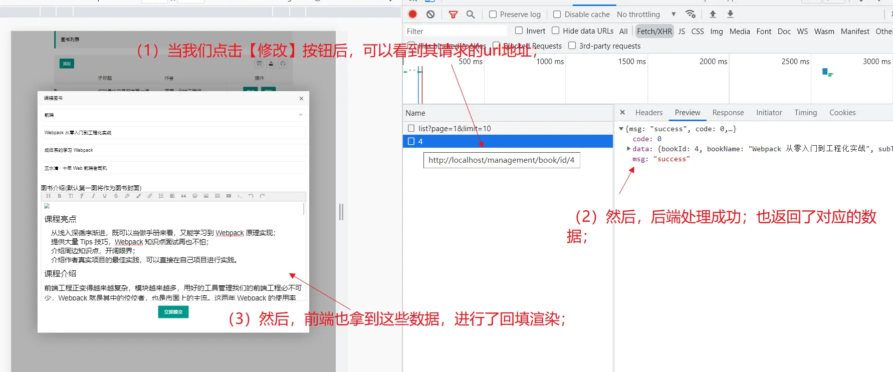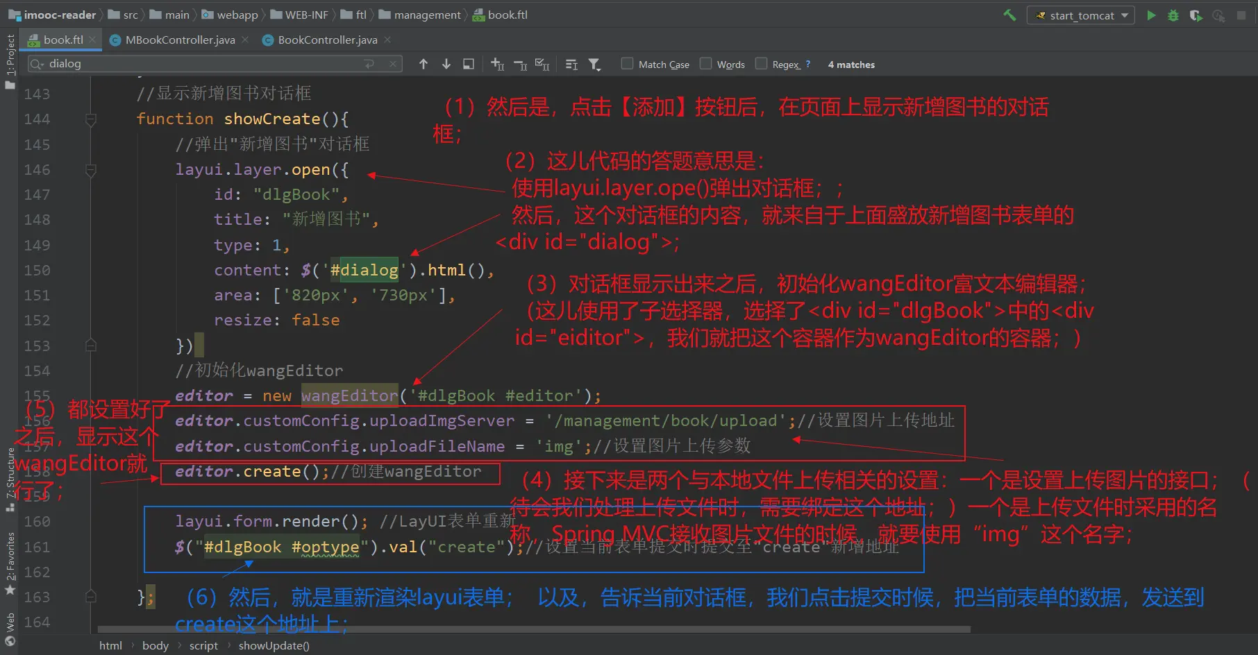 (1) 本篇博客内容说明:【在后台系统,我们点击新增按钮后,会弹出新增图书对话框】→【该对话框中,包含一个wangEditor富文本编辑器】→【wangEditor富文本编辑器中,可以包含图片】→【我们点击对话框中的“点击提交”按钮后,会把当前图书的信息给提价到服务器】→【不过,本篇博客,只关心如何把wangEditor中的图片上传到服务器;暂不关心图书信息的其他内容】→【完整图书信息提交,的后端逻辑,将在下篇博客中介绍】;