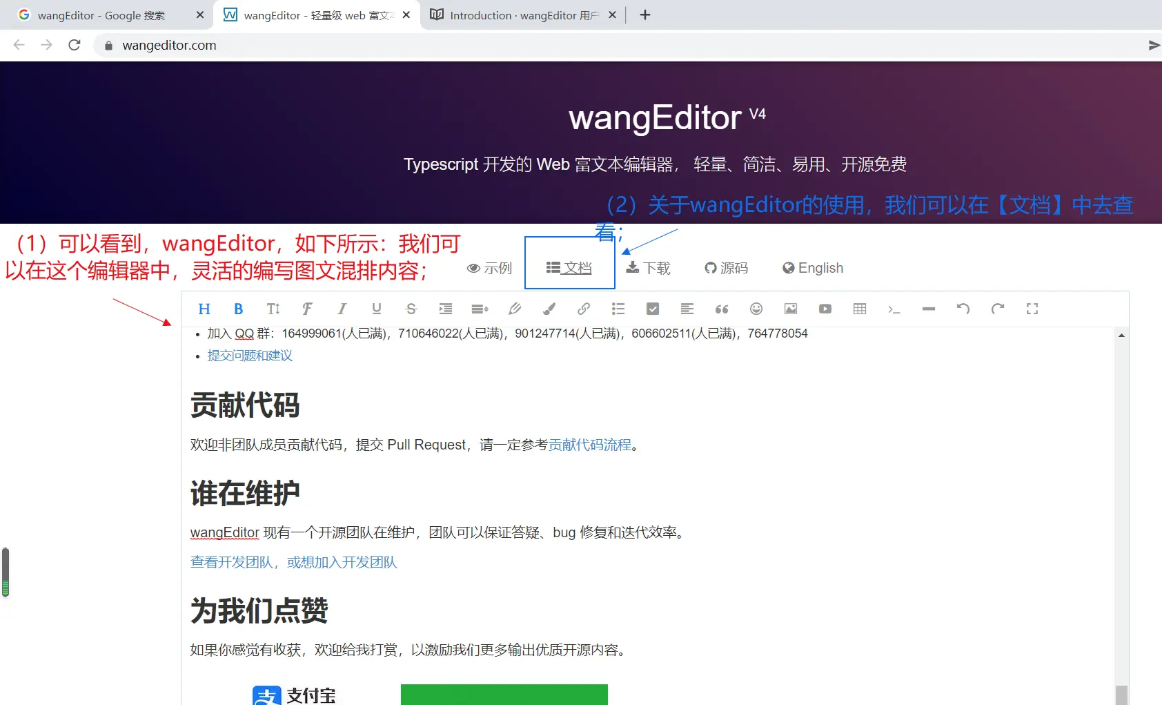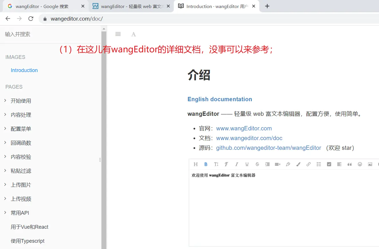 wangEditor组件是国产的,所以阅读起来,没有语言障碍;