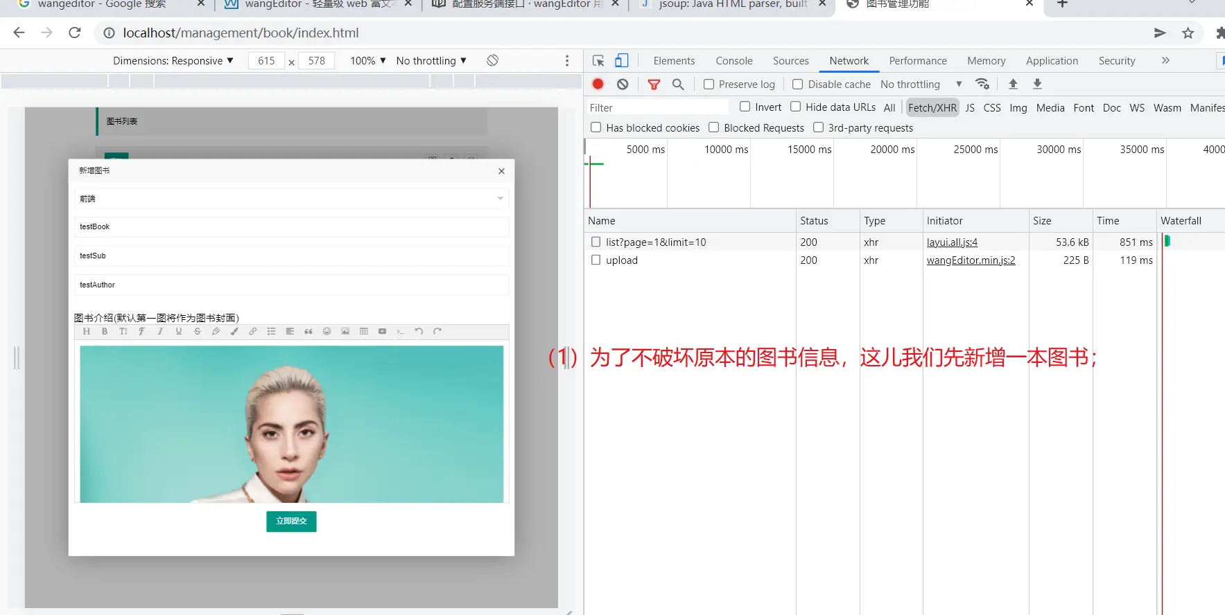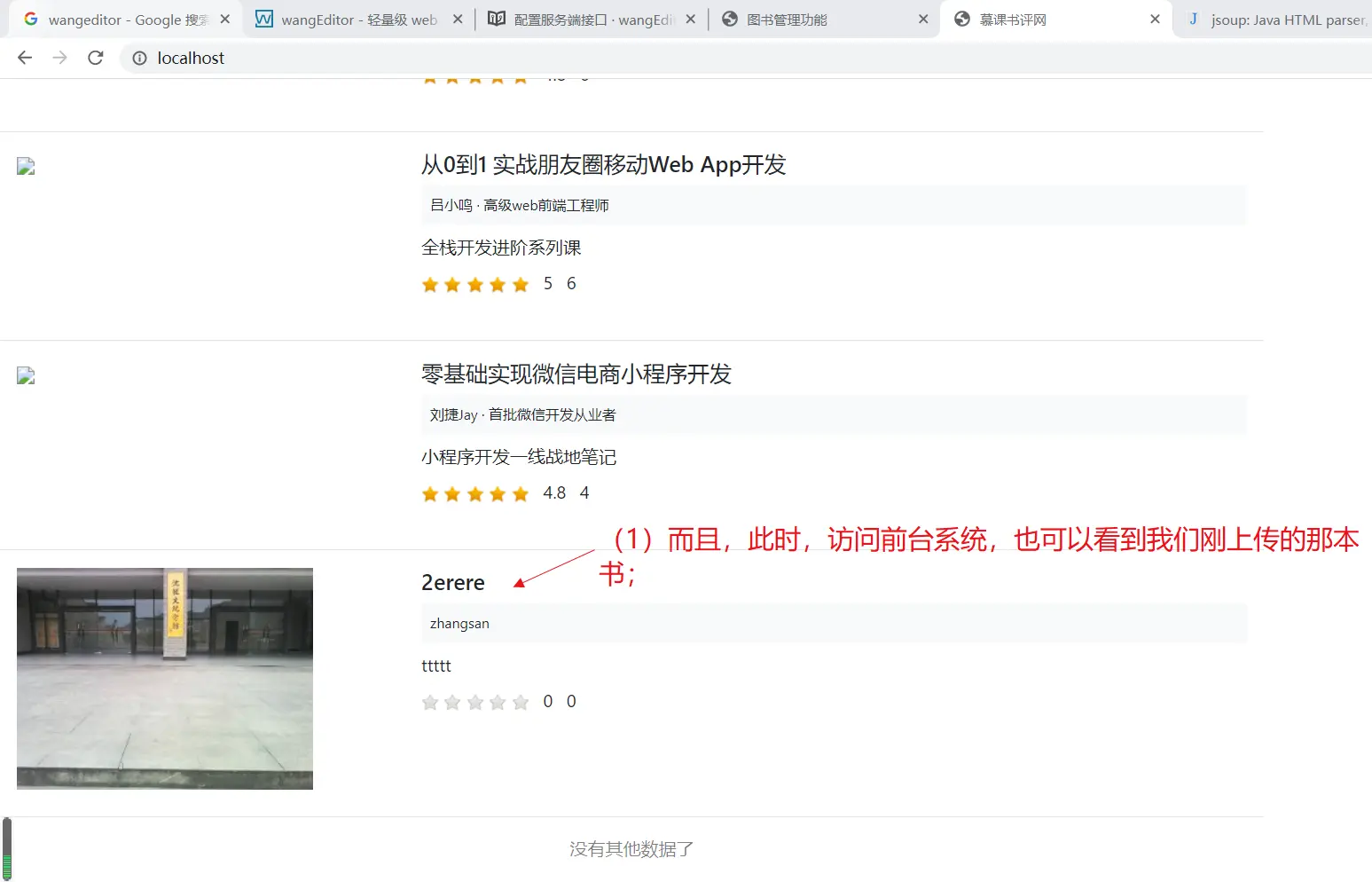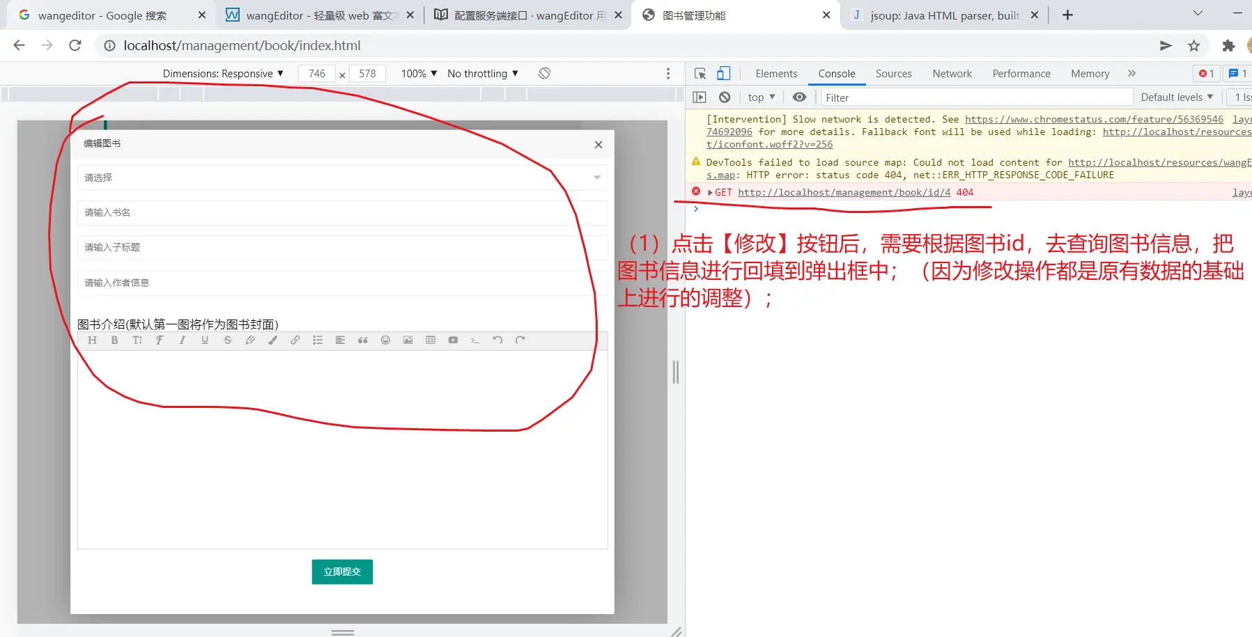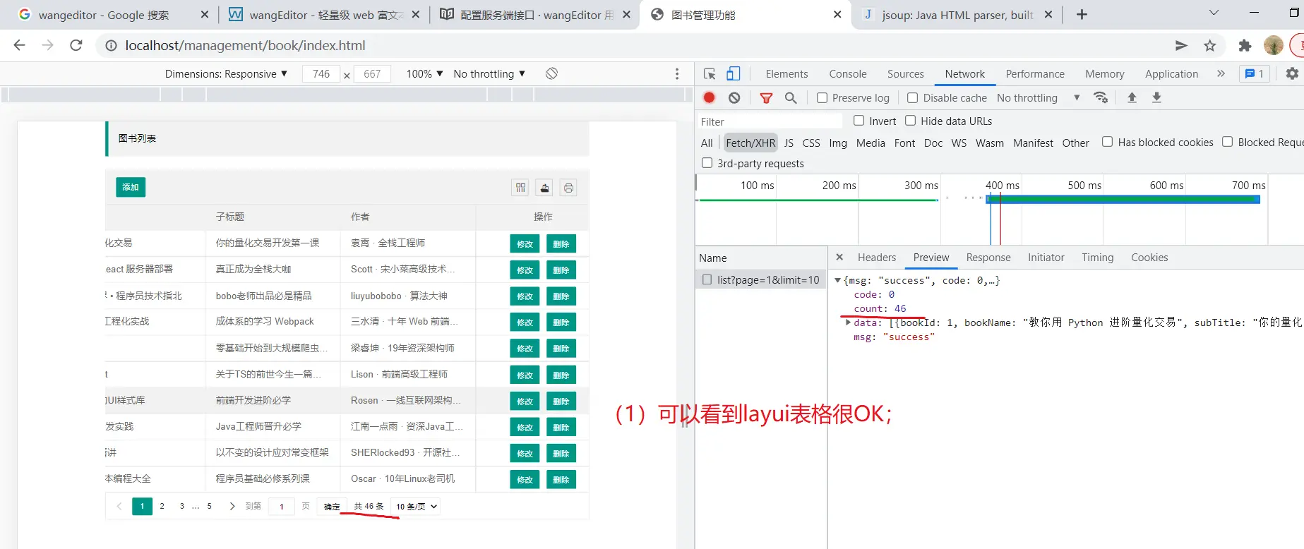 至此,wangEditor的最基本使用就OK了;有了这个基础后,就可以取开发后台的图书管理功能了;