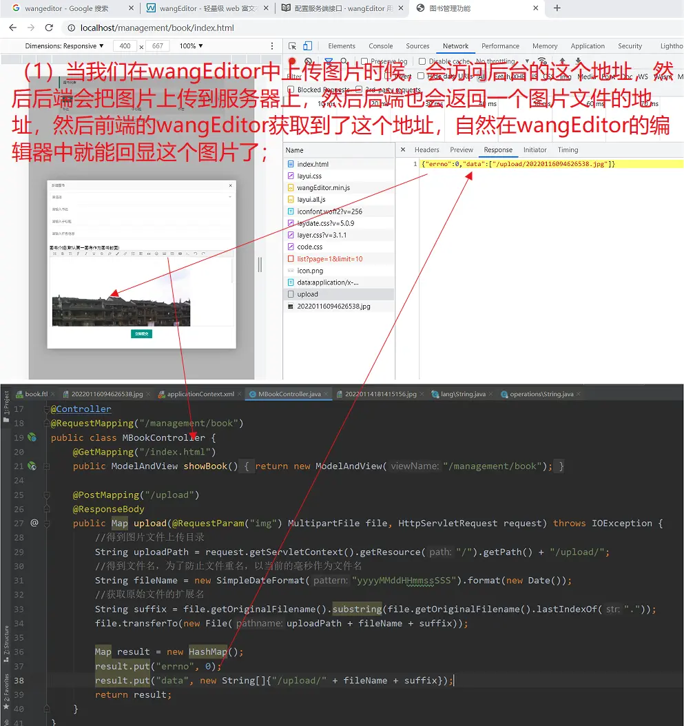 因此,我们要针对wangEditor,开发与之对应的【图片上传功能】;