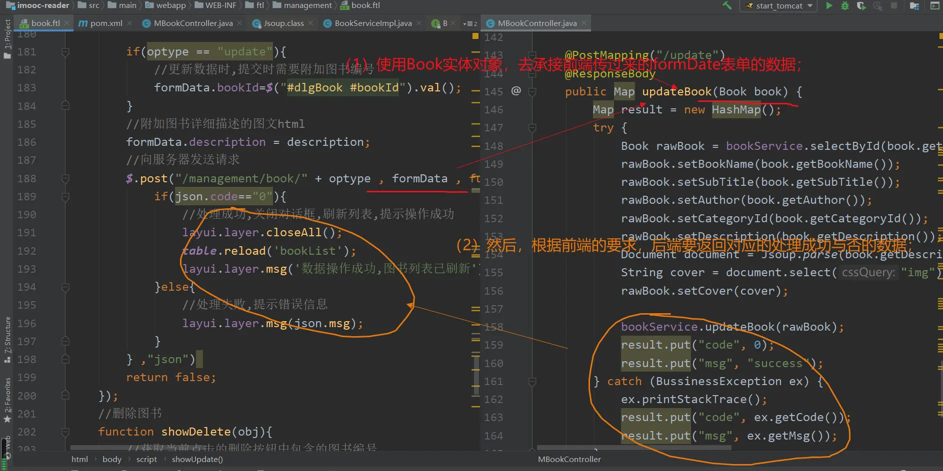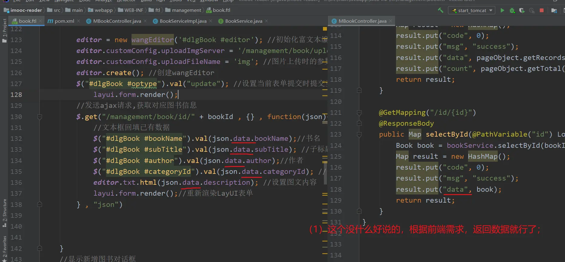 4. 究竟后端方法是【渲染数据跳转页面】还是【返回JSON数据】以及【返回JSON数据的格式】,这是由前端的要求决定的;而前端的编写又是由业务逻辑的需求决定的;