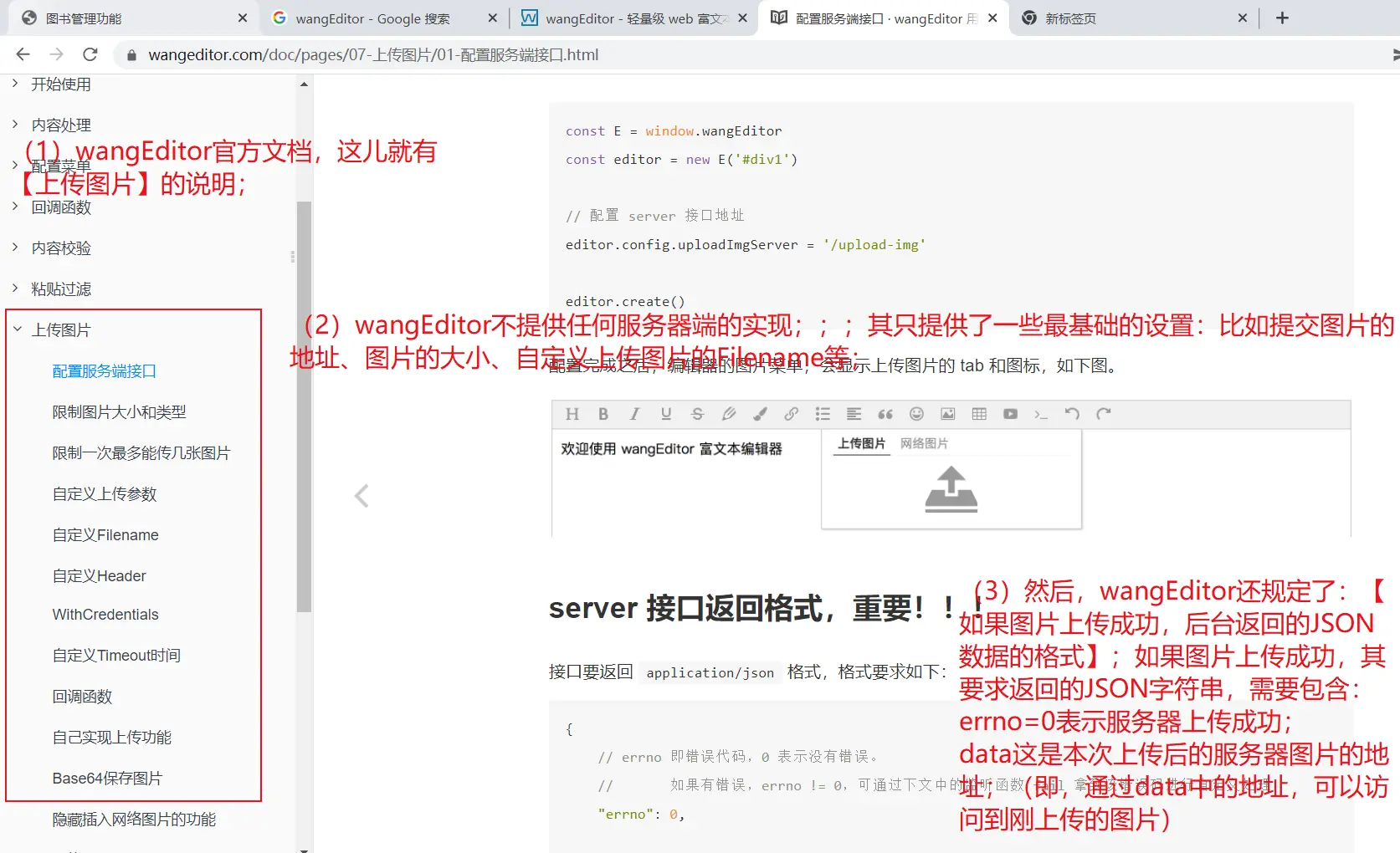 22. 介绍了wangEditor富文本编辑器;主要内容是,wangEditor富文本编辑器的图片上传;