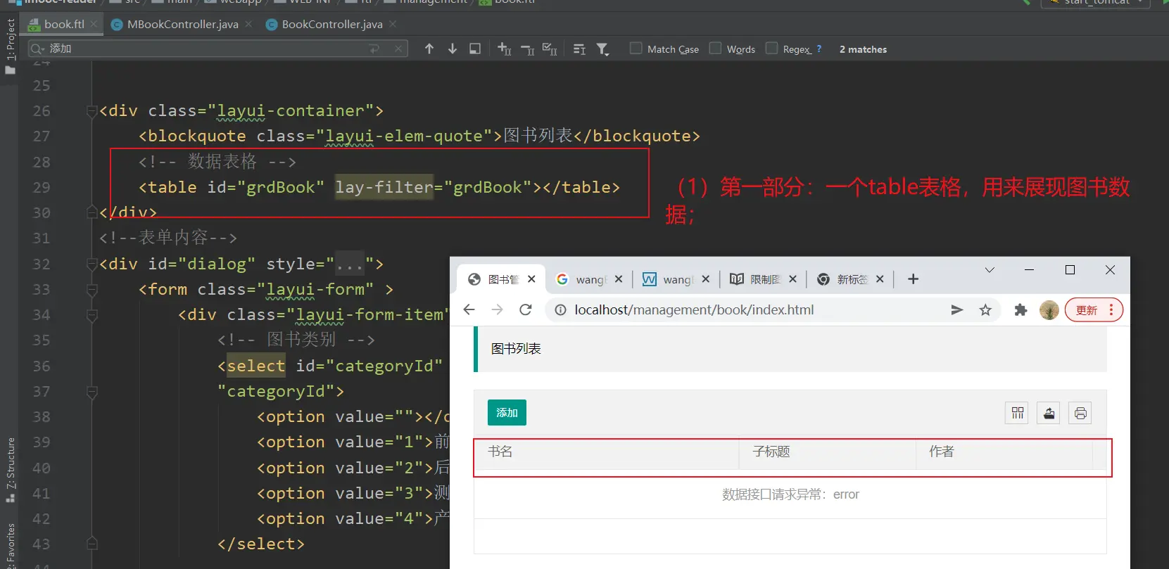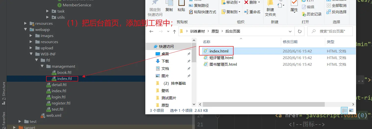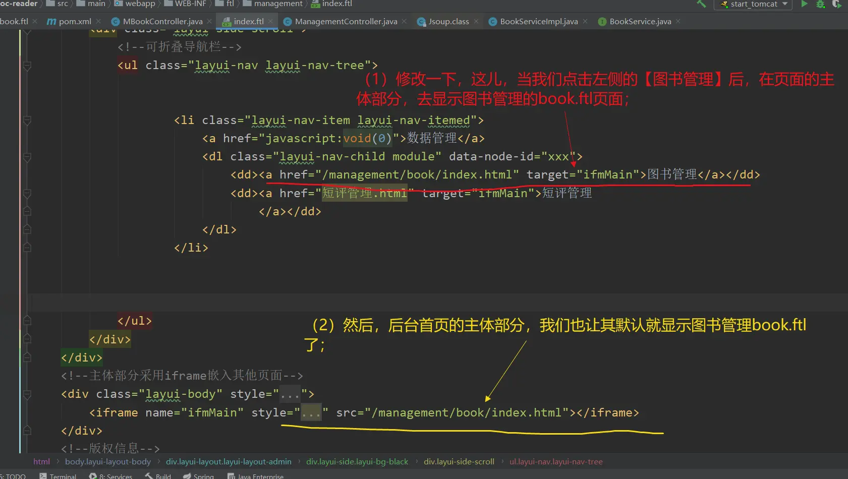 4.设置index.ftl,让其主体部分,显示图书管理页
