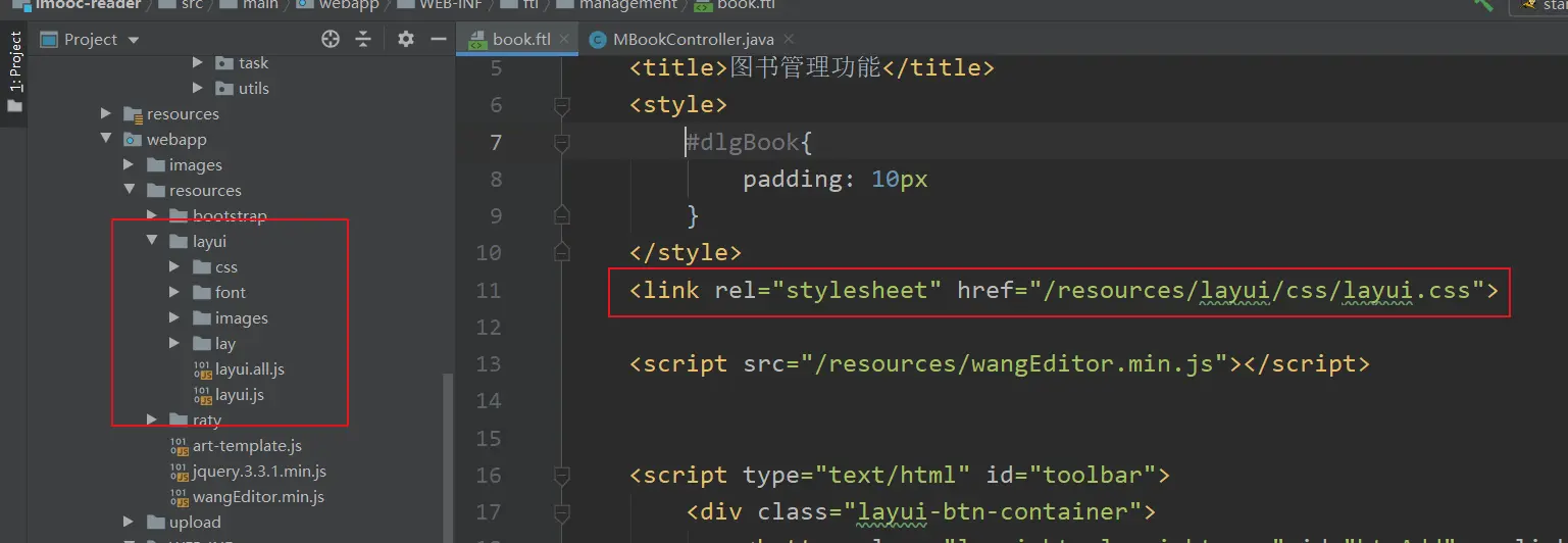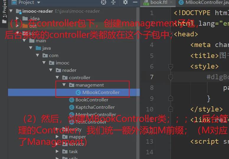 二:前置准备:引入后台首页book.ftl;创建访问入口;观察效果;