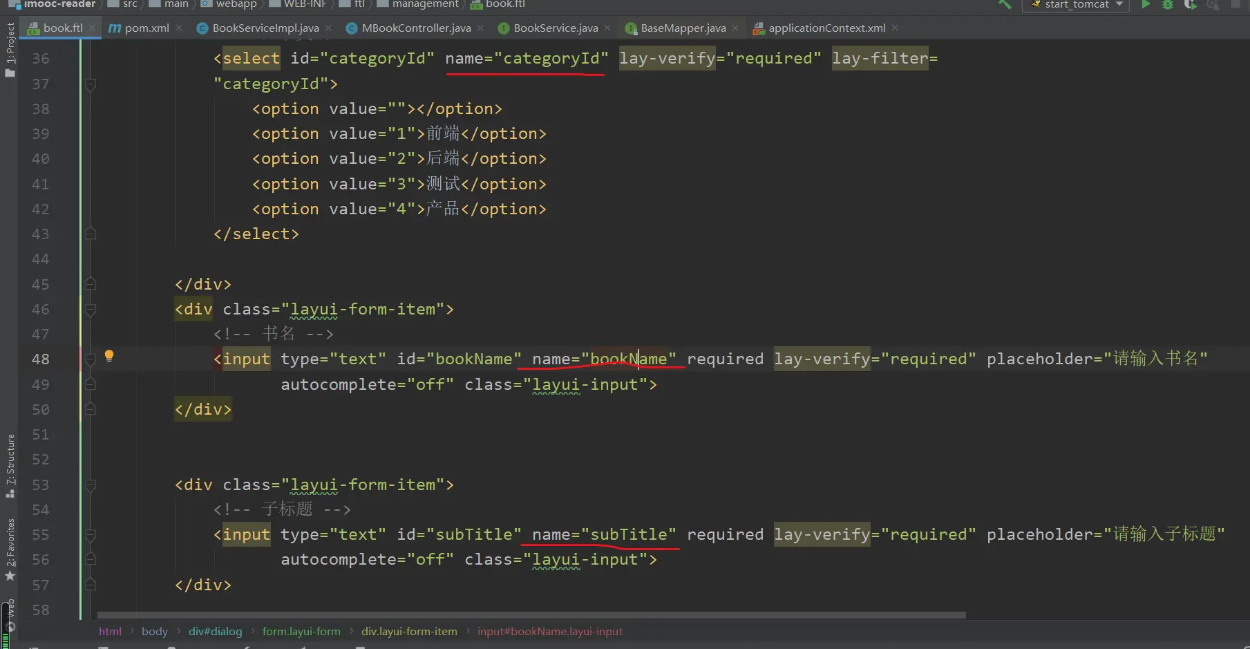 <input type="text" id="bookName" name="bookName" required lay-verify="required" placeholder="请输入书名"