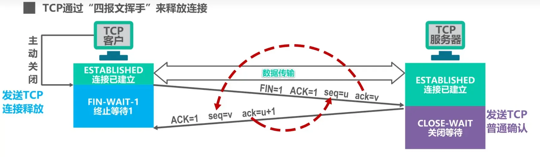 确认号ack字段的值设置为u+1,这是对tcp连接释放报文段的确认